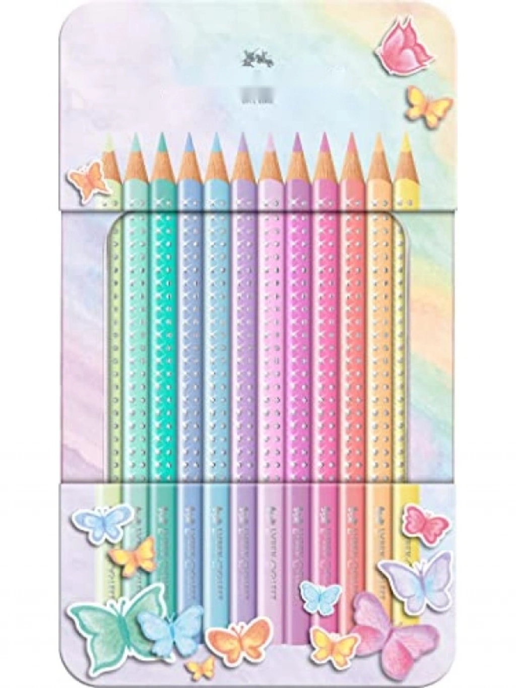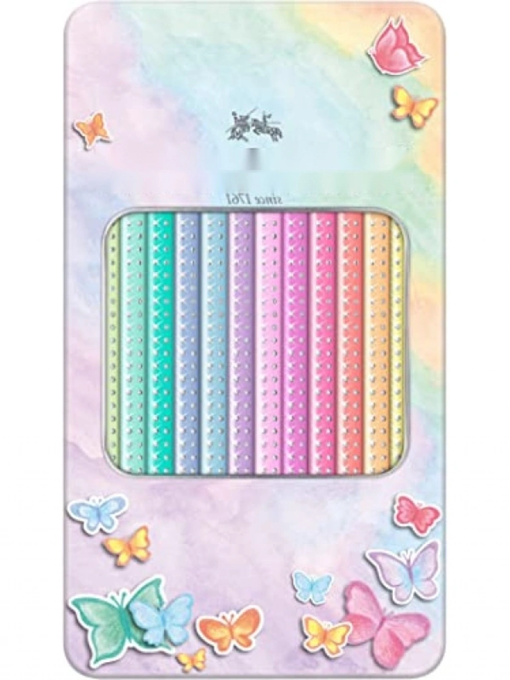 Canlı ve inci parlaklığında renkler sunan bu 12'li kuru boya kalemi seti, el yormayan ergonomik üçgen gövdesi ile uzun süreli rahat kullanım sağlar. Özel kelebeği tasarımlı metal kutusu, taşınabilirliği artırırken, kırılmaya dayanıklı uçları ile ekstra dayanıklılık sunar. Sanat dersleri, hobi çalışmaları ve yaratıcı etkinlikler için ideal bir seçimdir.