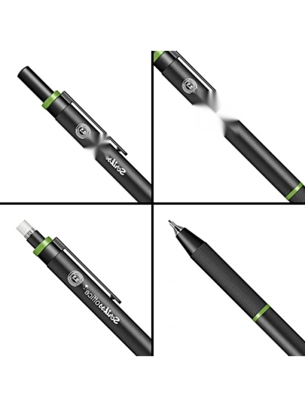 Mat siyah lake kaplama metal gövdeye sahip bu versatil kalem, 0.5 mm uç kalınlığı ile keskin ve net yazım deneyimi sunar. Ergonomik tutuş sağlayan grip yapısı ve geri çekilebilir uç mekanizması ile pratik bir kullanım sunar. Üstünde bulunan silgi ve metal aksesuarlar ile fonksiyonelliği artıran bu kalem, ofis ve okul kullanımı için mükemmel bir tercihtir.