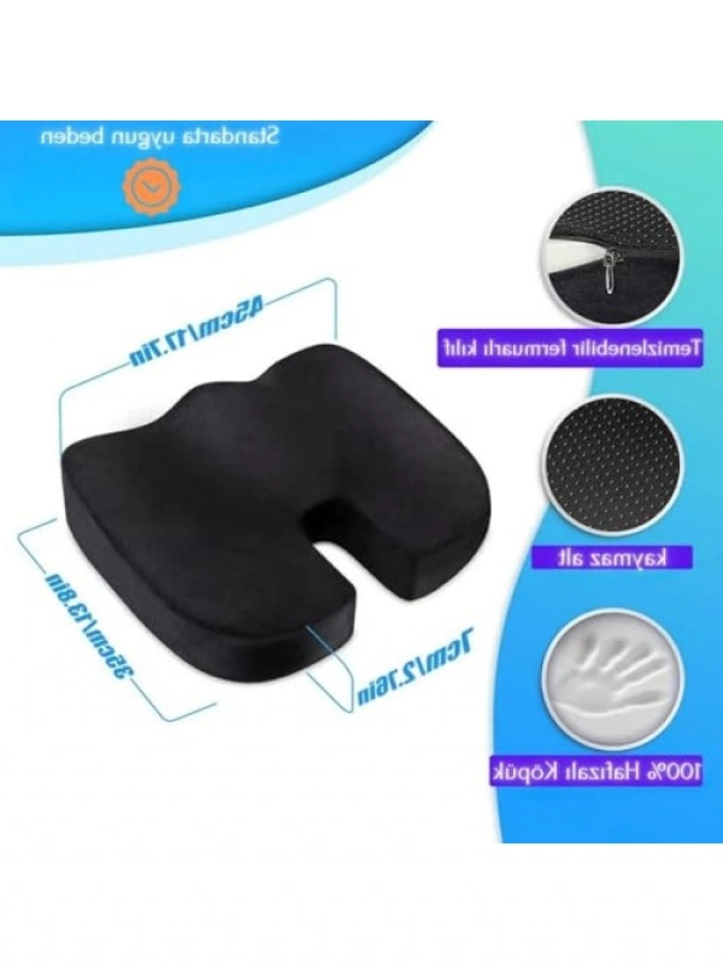 Uzun süre oturanlar için tasarlanmış bu ergonomik visco oturma minderinin özel tasarımı, bel ve kalça desteği sunarak doğru oturma pozisyonunu destekler. Nefes alabilen ve çıkarılabilir kılıfı sayesinde hijyenik bir kullanım sağlar. Kaymaz tabanı ile güvenli bir oturum sunar. Ofis, ev veya araçta konfor sağlamak için idealdir.