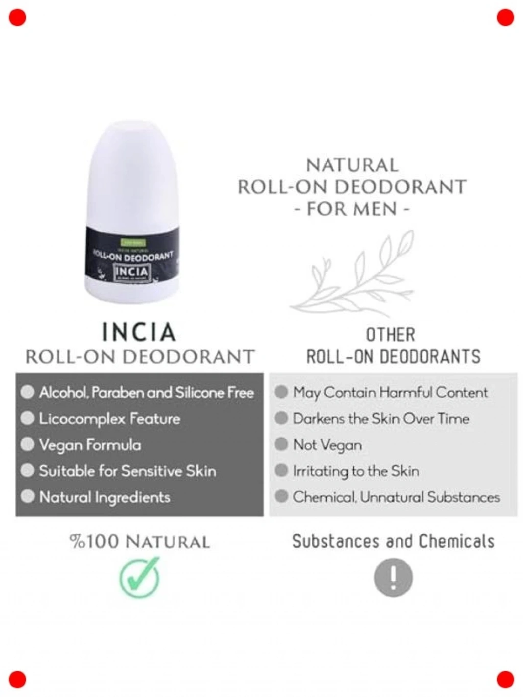 Erkekler için özel olarak formüle edilmiş bu %100 doğal roll-on deodorant, ter kokusunu etkili bir şekilde önlerken cildinize saygı duyar. Alüminyum, paraben ve alkol gibi zararlı kimyasallar içermeyen saf formülü sayesinde cildinizin nefes almasını sağlar. Leke yapmayan özelliği ile kıyafetlerinizde iz bırakmaz, böylece gönül rahatlığıyla kullanabilirsiniz. Gün boyu süren ferahlık ve temizlik hissi sunar. Cildin doğal dengesini koruyarak tahrişi en aza indirir. Hassas ciltler dahil tüm cilt tipleri için uygundur. Kendinizi doğal ve güvende hissetmek için ideal bir seçim.