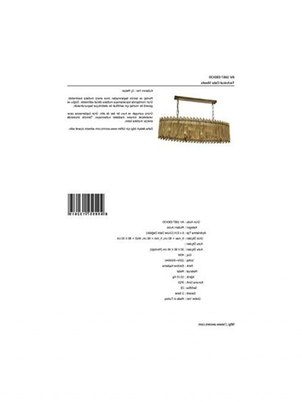 Bu modern avize, eskitme kaplaması ile şık bir görünüm sunar. 6 adet E14 duy ile maksimum 40W'lık ampüllerle kullanılabilir. Estetik tasarımı ile her mekan için uyum sağlar. Ampüller ürüne dahil değildir, böylece kendi tercihlerinize göre aydınlatma seçimi yapabilirsiniz. Kaliteli metal yapısı ile uzun ömürlü kullanıma uygundur.
