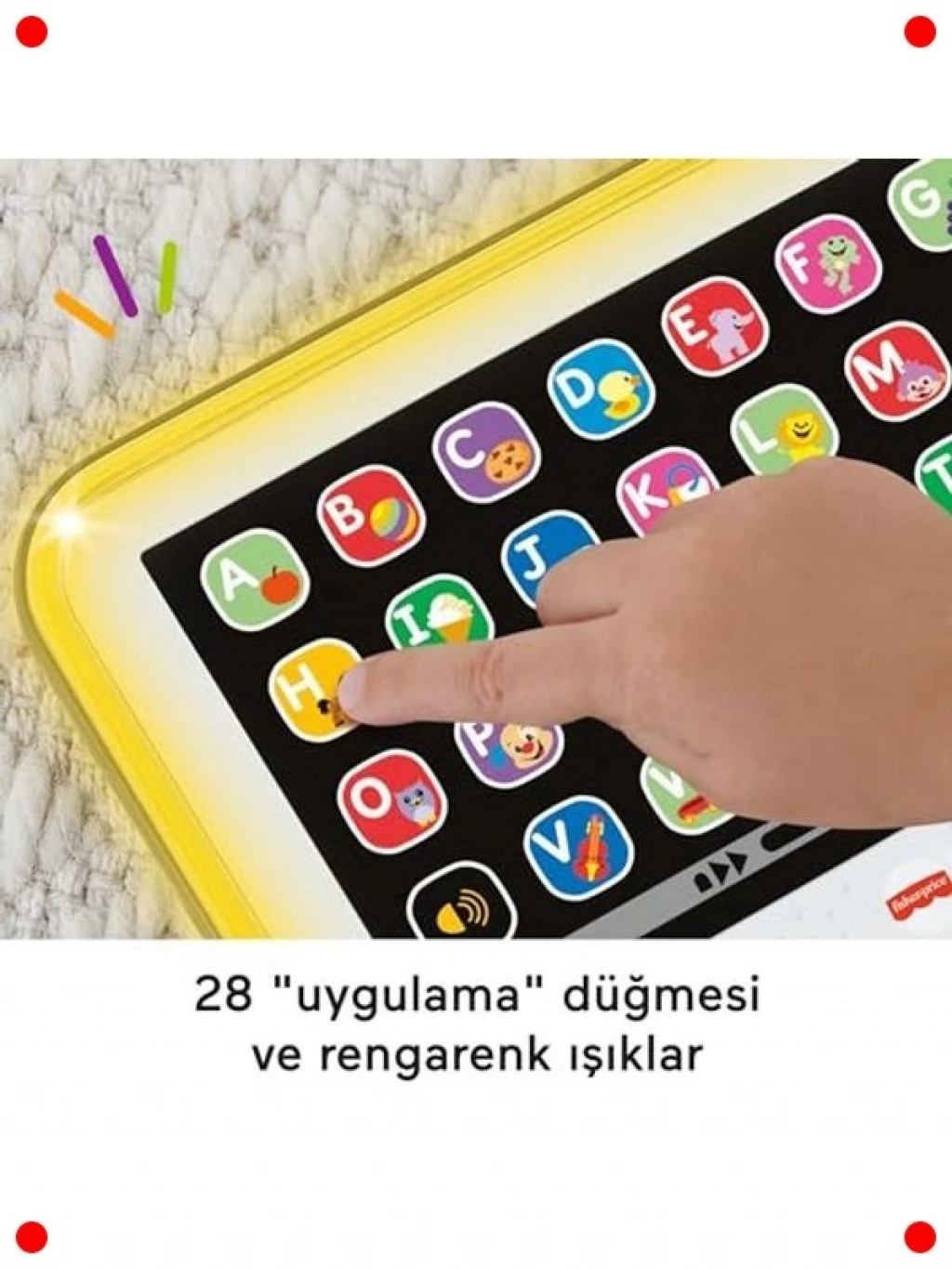 Çocukların yaşa göre gelişimini desteklemek üzere tasarlanmış bu etkileşimli eğitici tablet ile öğrenmeyi eğlenceli hale getirin. Harfler, sayılar, şekiller ve renkler gibi temel kavramları keşfetmelerine yardımcı olan zengin içeriklerle doludur. Çeşitli oyunlar, şarkılar ve aktiviteler sayesinde çocukların merak duygularını uyandırır, problem çözme becerilerini ve el-göz koordinasyonunu geliştirir. Dayanıklı ve çocuk dostu tasarımı, küçük eller için güvenli ve kolay kullanım sağlar. Eğlenirken öğrenmelerini sağlayan bu tablet, çocukların erken gelişimine değerli katkılar sunar.