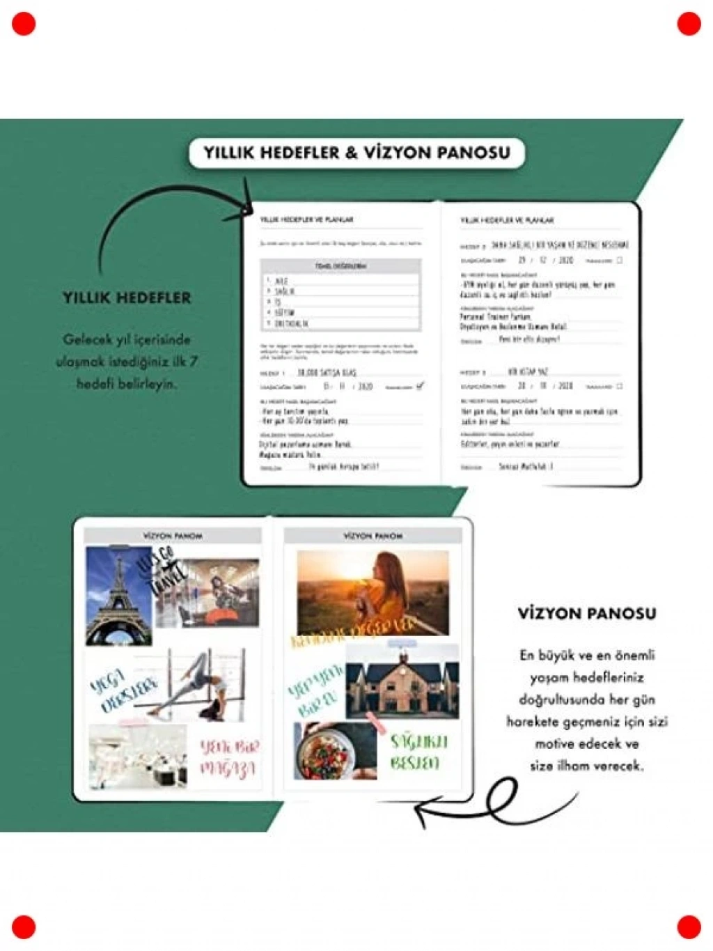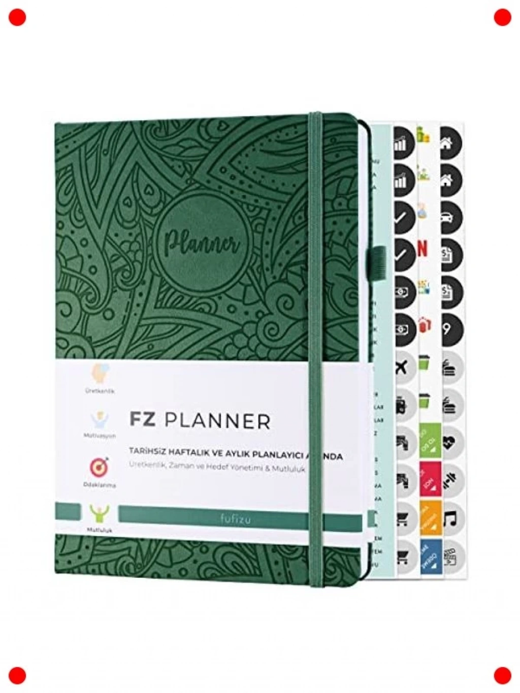 Hayatınızı organize ederken stilinizi yansıtın. Bu tarihsiz haftalık planlayıcı, zarif etnik desenleri ve dayanıklı deri kapağıyla öne çıkıyor. Esnek tasarımı sayesinde istediğiniz zaman kullanmaya başlayabilir, programınızı kişisel ihtiyaçlarınıza göre ayarlayabilirsiniz. Haftalık düzenleyici sayfalar, randevularınızı, görevlerinizi ve hedeflerinizi kolayca takip etmenizi sağlar. Yüksek kaliteli kağıdı ve şık yeşil rengiyle hem göz alıcı hem de işlevseldir. Bu planlayıcı, günlük yaşamınızı düzenlemenize ve ilham verici bir görünümle motive olmanıza yardımcı olacak ideal bir araçtır.