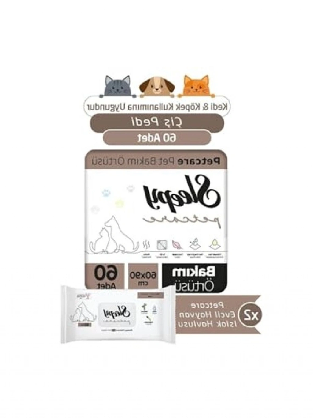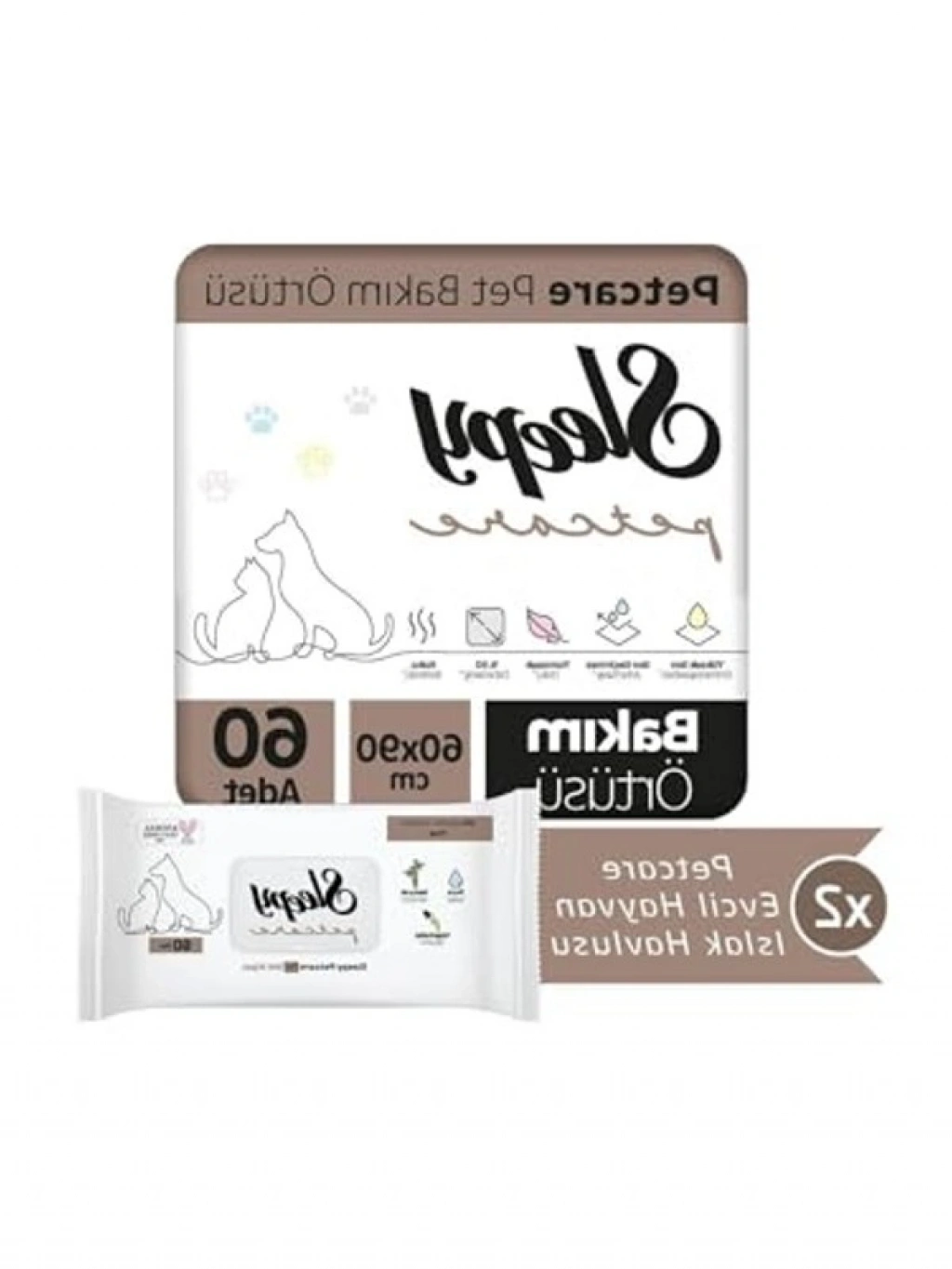 60 adetten oluşan evcil hayvan bakım örtüsü, 2x30 paket halinde sunulmaktadır. Pratik kullanımı ile evcil hayvan bakımı sırasında hijyen sağlar.