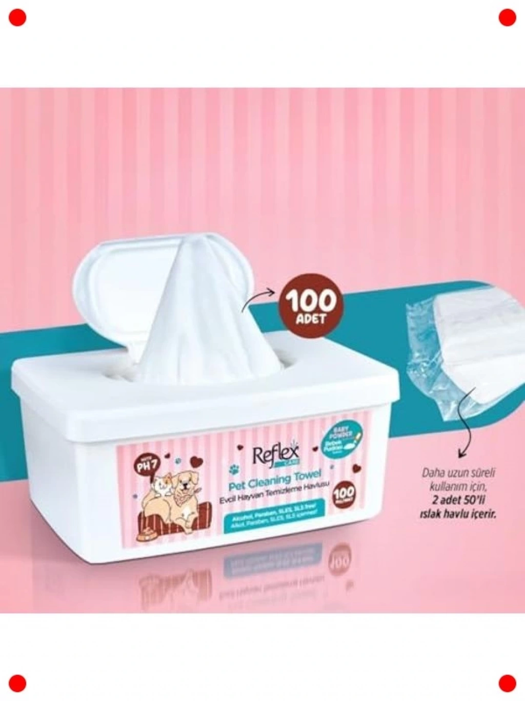 Evcil hayvanınızın hijyenini sağlamak için pratik ve etkili bir çözüm sunan bu çok amaçlı temizleme mendilleri, 100 adetlik avantajlı paketiyle daima elinizin altında. Alkolsüz ve hipoalerjenik formülü sayesinde, evcil dostunuzun hassas cildine zarar vermeden patilerini, tüylerini, kulaklarını ve göz çevresini nazikçe temizler. Kötü kokuları gidermeye yardımcı olurken, cildi nemlendirir ve ferahlatır. Büyük ve dayanıklı mendiller, tek seferde etkili temizlik sağlar. Seyahatlerde, gezinti sonrası veya hızlı bir tazelenme gerektiğinde idealdir. Evcil hayvanınızın her zaman temiz, ferah ve bakımlı kalmasını sağlar.