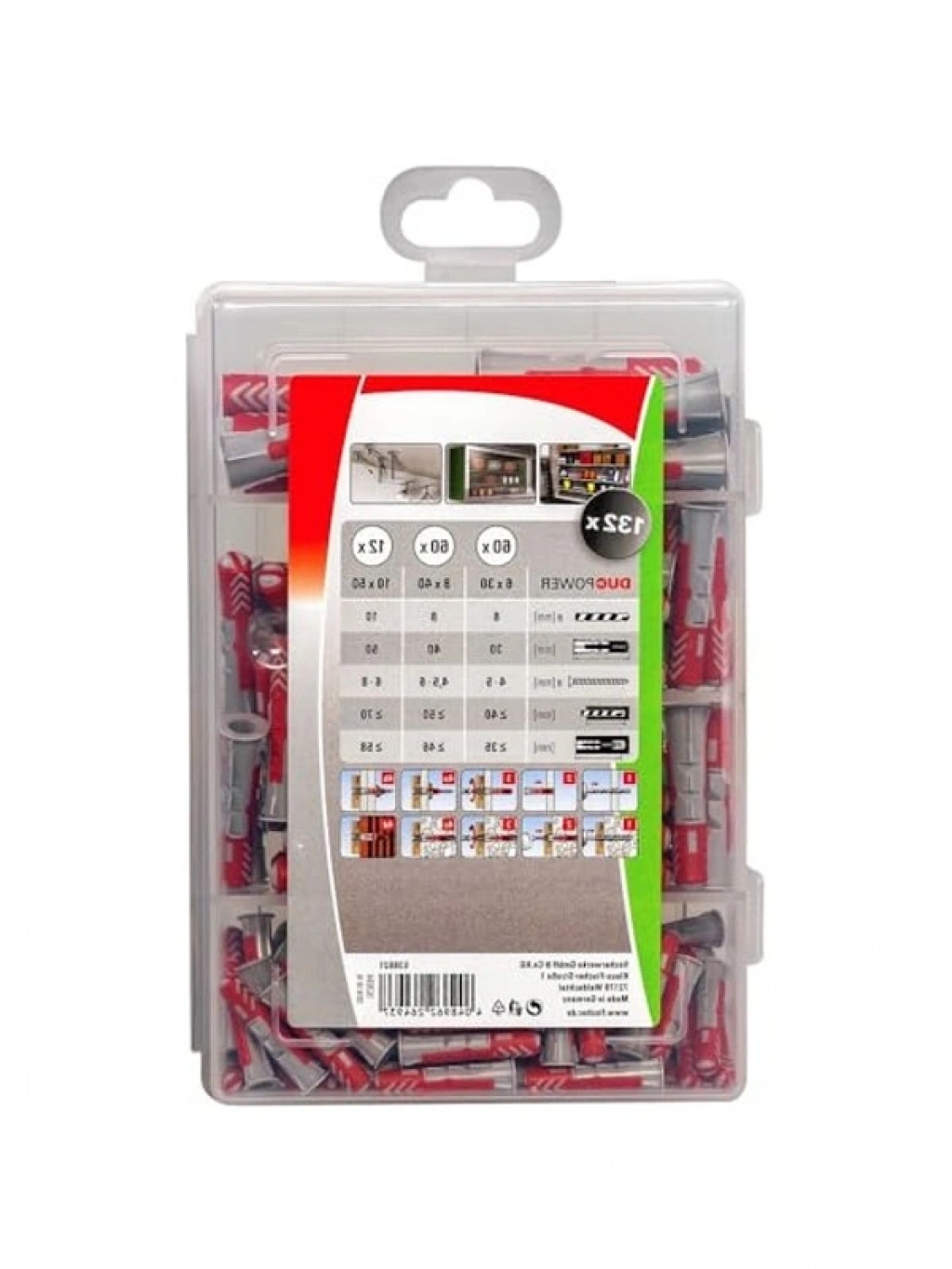 Evrensel dübel seti, toplamda 132 parçadan oluşan bir yapıya sahiptir. Bu set, 60 adet 6x30 mm, 60 adet 8x40 mm ve 12 adet 10x50 mm boyutlarındaki DUOPOWER dübel ile birlikte gelir. Özellikle her yapı malzemesine uygun tasarımıyla, katlama, yayma ve düğümleme prensipleri ile yüksek yük değerlerine ulaşarak güvenli bir montaj sağlar. Pratik PROFI-BOX’ta yer alan bu dübel seti, amatör ve profesyonel kullanıcılara yönelik geniş bir seçenek sunmaktadır. Güçlü ve kompakt yapısıyla işlerinizi kolaylaştırır.