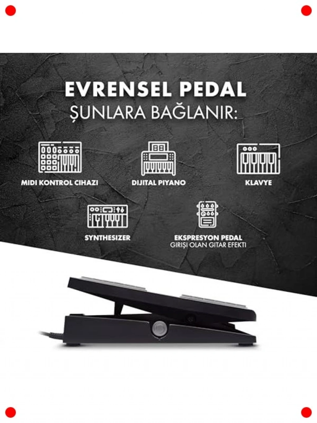 Müzikal ifadelerinizi derinleştirmek ve enstrümanlarınıza dinamik bir kontrol katmak için tasarlanmış bu evrensel ekspresyon pedalı ile yaratıcılığınızı serbest bırakın. Klavyeler, synthesizer'lar ve diğer MIDI cihazlarıyla geniş uyumluluk sunan bu pedalı, ses seviyesi, modülasyon, wah veya diğer efekt parametrelerini gerçek zamanlı olarak kontrol etmek için kullanabilirsiniz. Pürüzsüz ve hassas hareketi, doğal ve akıcı geçişler sağlar. Sağlam ve dayanıklı yapısıyla hem stüdyo hem de canlı performanslar için idealdir. Kaymaz tabanı sayesinde yerinde sabit kalır ve güvenilir bir performans sunar.
