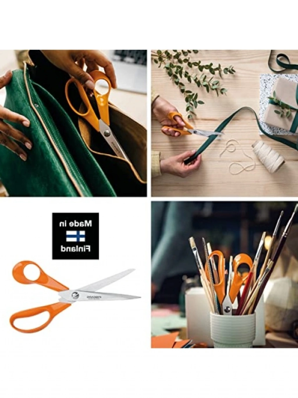 Bu klasik evrensel makas, 21 cm uzunluğu ile kağıt, lamine malzeme ve kumaşları zahmetsizce kesmenizi sağlar. Paslanmaz çelik bıçakları sayesinde yüksek kaliteli ve dayanıklıdır. Ayarlanabilir vida ile bıçak gerginliğini değiştirebilir, ergonomik kulplar sayesinde ise uzun süreli kullanımlarda konforu artırabilirsiniz.