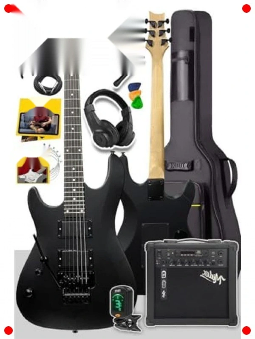 Müzik tutkunları için hazırlanmış fesyonel bir elektro gitar seti, gelişmiş özelliklerle donılmıştır. Yüksek kaliteli elektro gitar, her türden müziğe uyum sağlayacak esnek tonlar sunar. Setin kalbi, 25 Wt gücünde, gain'li, şarj edilebilir ve Bluetooth özellikli amfisidir. Bluetooth bağlantısı saynde akıllı cihazlarınızdan müzik dinleyebilir veya eşlik ederek prik yapabilirsiniz. Şarj edilebilir özelliği, amfinizi istediğiniz yere taşımanızı ve priz aramadan çalmanızı sağlar. Kılıf, askı, pena gibi tüm temel aksesuarları içeren full set, hem yeni başlayanlar hem de deneyimli gitaristler için kusursuz bir deneyim sunar. Modern teknolojiyi ve üstün performansı bir araya getirir.