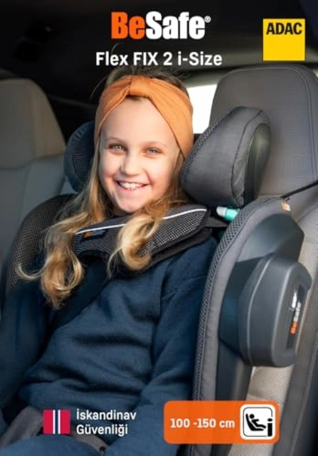 Flex Fıx i-Size 2 oto koltuğu, 15-36 kg aralığındaki çocuklar için tasarlanmıştır. Trambolin benzeri bir konfor sunan koruyucu baş desteği ile donatılmıştır. Omuz ve bel kemeri kılavuzları, doğru pozisyonlandırmayı kolaylaştırır. Bel kemeri kılavuzu yıkanabilir ve çıkarılabilirken, oturma alanı çocuk uyurken güvenli bir şekilde yatış pozisyonuna ayarlanabilir. Ayrıca, yan bariyerler çıkarılarak aynı alanda üç çocuğun oturmasına olanak tanır.
