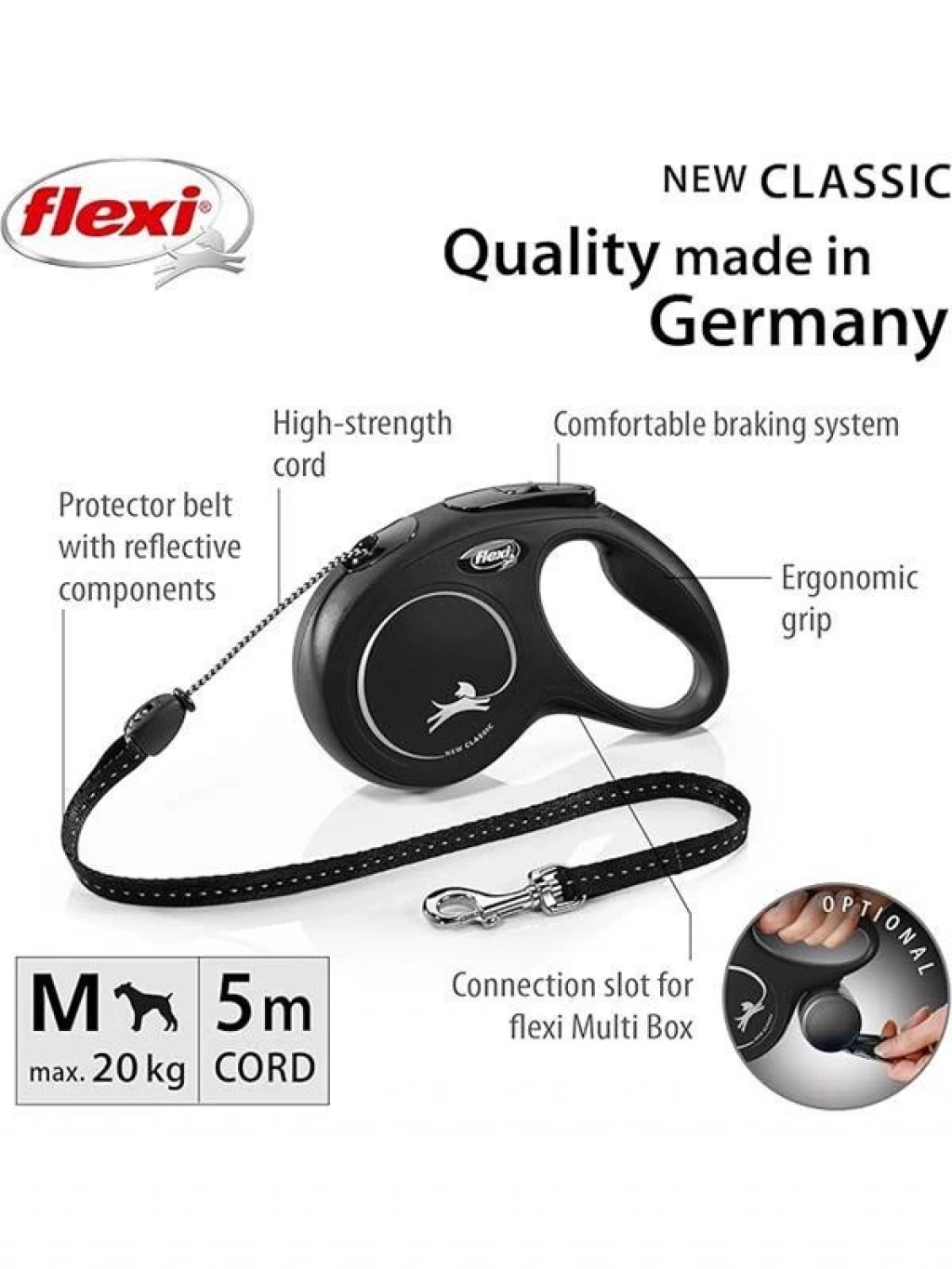 Flexi New Classic M Beden Siyah 5mt Şerit Tasma