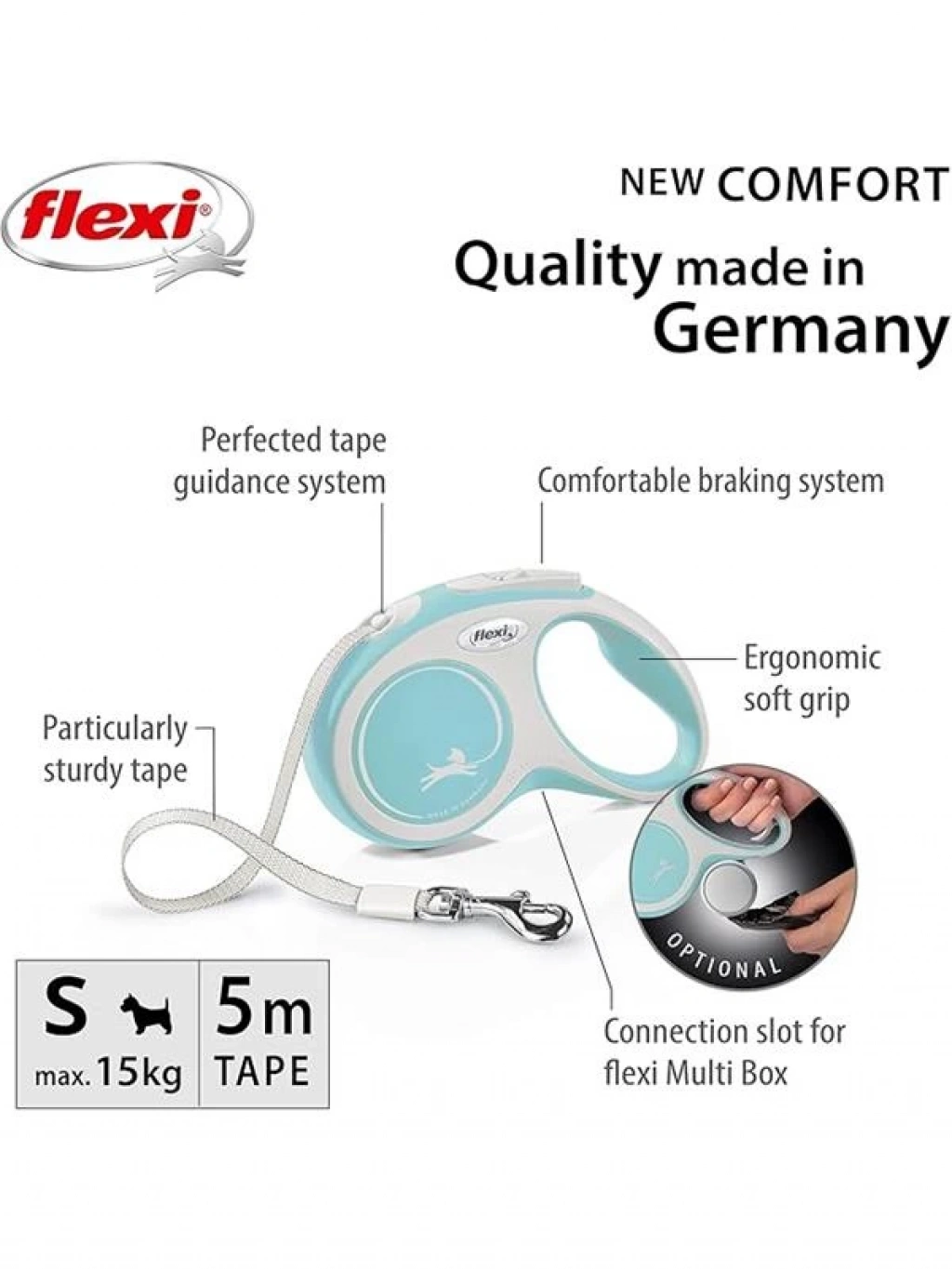 Bu ürün hakkında Flexi New Comfort Otomatik Açık Mavi Şerit Gezdirme Small 5 Mt