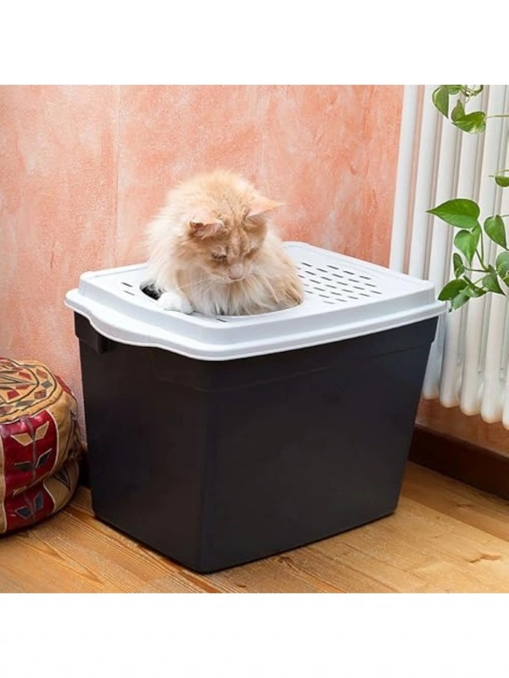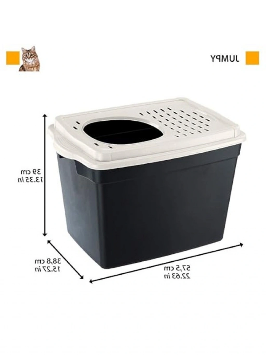Fonksiyonel kedi tuvaleti, 38,8 x 57,5 x 39 cm ölçüleriyle geniş bir alan sunar. Doğal içgüdülerini tatmin etmesi için özel olarak tasarlanan bu ürün, derin tabanı sayesinde kum sızmasını önler. Sağlam plastik yapısı ve saplı kapak tasarımıyla temizlik işlemlerini kolaylaştırır.