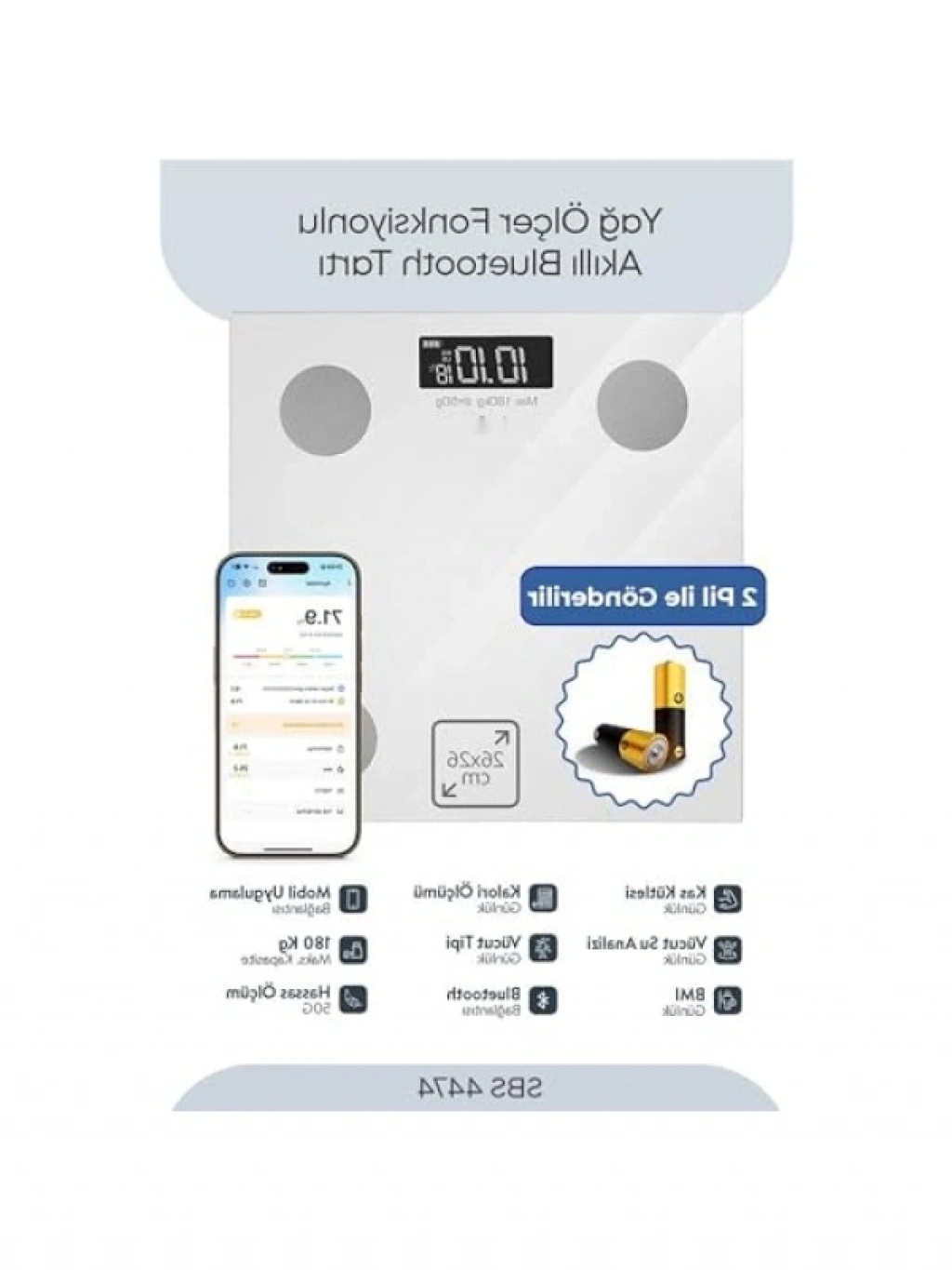 Bu akıllı tartı, 180 kg kapasiteli olmasının yanı sıra, 50 gram hassasiyet ile doğru ölçümler sağlar. Bluetooth ve mobil uygulama desteği ile tüm ölçümlerinizi mobil cihazınıza aktarabilir ve geçmiş verileri takip edebilirsiniz. Geniş vücut analizi sunarak, yağ oranı, kas kütlesi, BMI, su oranı, kemik yoğunluğu ve kalori ölçümü yapar. Kompakt ve şık tasarımı sayesinde az yer kaplar. Temperli cam yüzey ve hassas sensörleri ile güvenilir bir kullanım sunar. Hem sağlık hem de estetik açıdan mükemmel bir üründür.