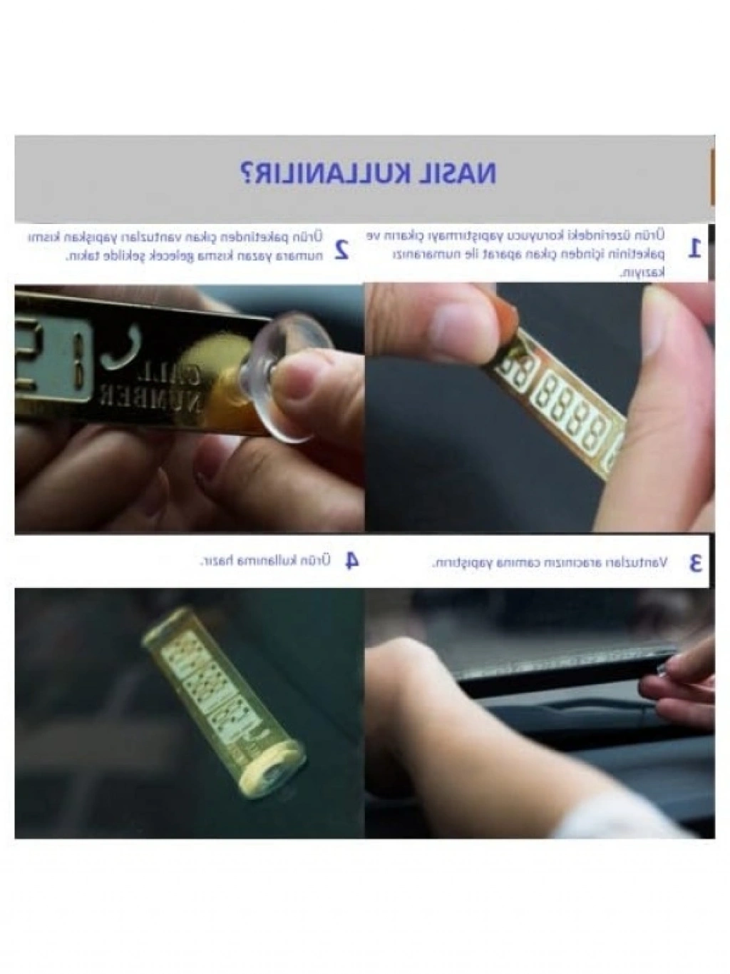 Bu pratik araç telefon numaratörü, 1. sınıf fiber malzeme ile üretilmiştir. Üzerinde dijital 8 rakamları ile birlikte gelir ve kendi numaranızı oluşturabilmeniz için tasarlanmıştır. Güçlü vantuzları sayesinde aracınızın camına kolayca monte edilebilir. Kullanıcı dostu tasarımı ile telefon numaranızı her zaman görünür kılar.