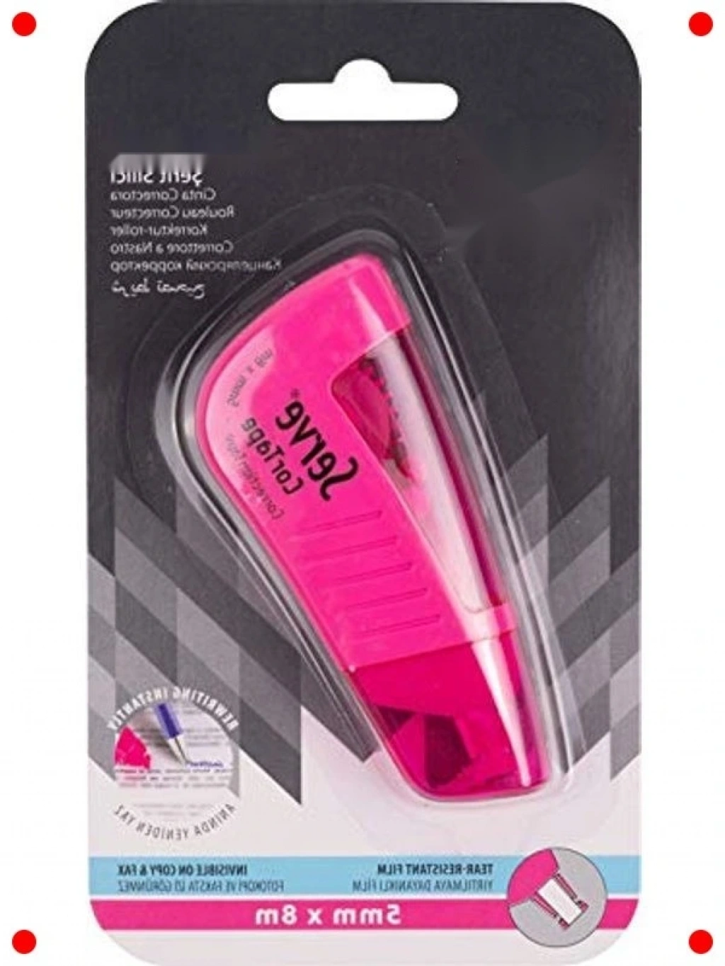 Bu pratik şerit silici ile hatalarınızı anında ve kusursuz bir şekilde düzeltin. 5 mm genişliğindeki şerit, hassas düzeltmeler için idealdir ve 8 metre uzunluğu sayesinde uzun süreli kullanım sunar. Fosforlu pembe rengi, belgelerinize canlı ve eğlenceli bir dokunuş katarak öne çıkmanızı sağlar. Ergonomik tasarımı sayesinde kolayca kavranır ve sorunsuz bir uygulama sunar. Tekli blister ambalajı ile her yere rahatça taşıyabilir, anında kullanıma başlayabilirsiniz. Kalem veya evrak işlerinizde temiz, hızlı ve etkili bir çözüm arayanlar için mükemmel bir seçenektir. Ofis, okul veya ev kullanımına uygun olup, kağıt üzerinde iz bırakmaz ve üzerine anında yazı yazılabilir, böylece zaman kaybını önler.