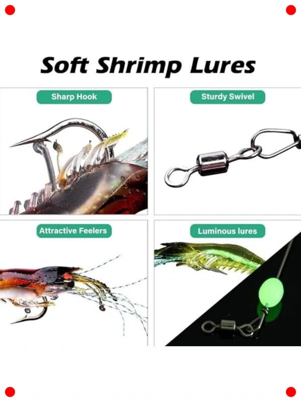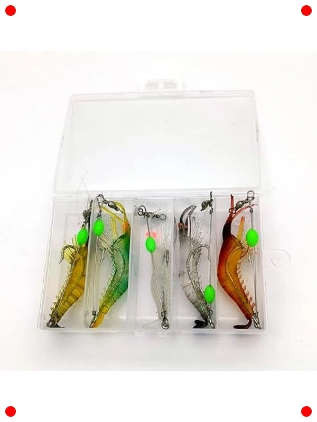 Balık avı deneyiminizi bir üst seviyeye taşıyacak bu 5 adetlik fosforlu silikon karides balık yemi seti ile av şansınızı artırın. Gerçekçi karides tasarımı ve hareketleri sayesinde balıkların dikkatini çekmede oldukça etkilidir. Fosforlu yapısı sayesinde özellikle düşük ışıklı ortamlarda, şafak vakti veya alacakaranlıkta parlayarak görünürlüğünü artırır ve avcı balıkların ilgisini çeker. Her biri 7.5 cm uzunluğunda ve 5.5 gram ağırlığında olan bu yemler, farklı balık türleri için uygundur. Yüksek kaliteli silikon malzemeden üretilmiş olup, dayanıklı ve esnektir. Özel kutusu sayesinde yemlerinizi düzenli ve korumalı bir şekilde saklayabilirsiniz. Deniz ve tatlı su avcılığı için idealdir.