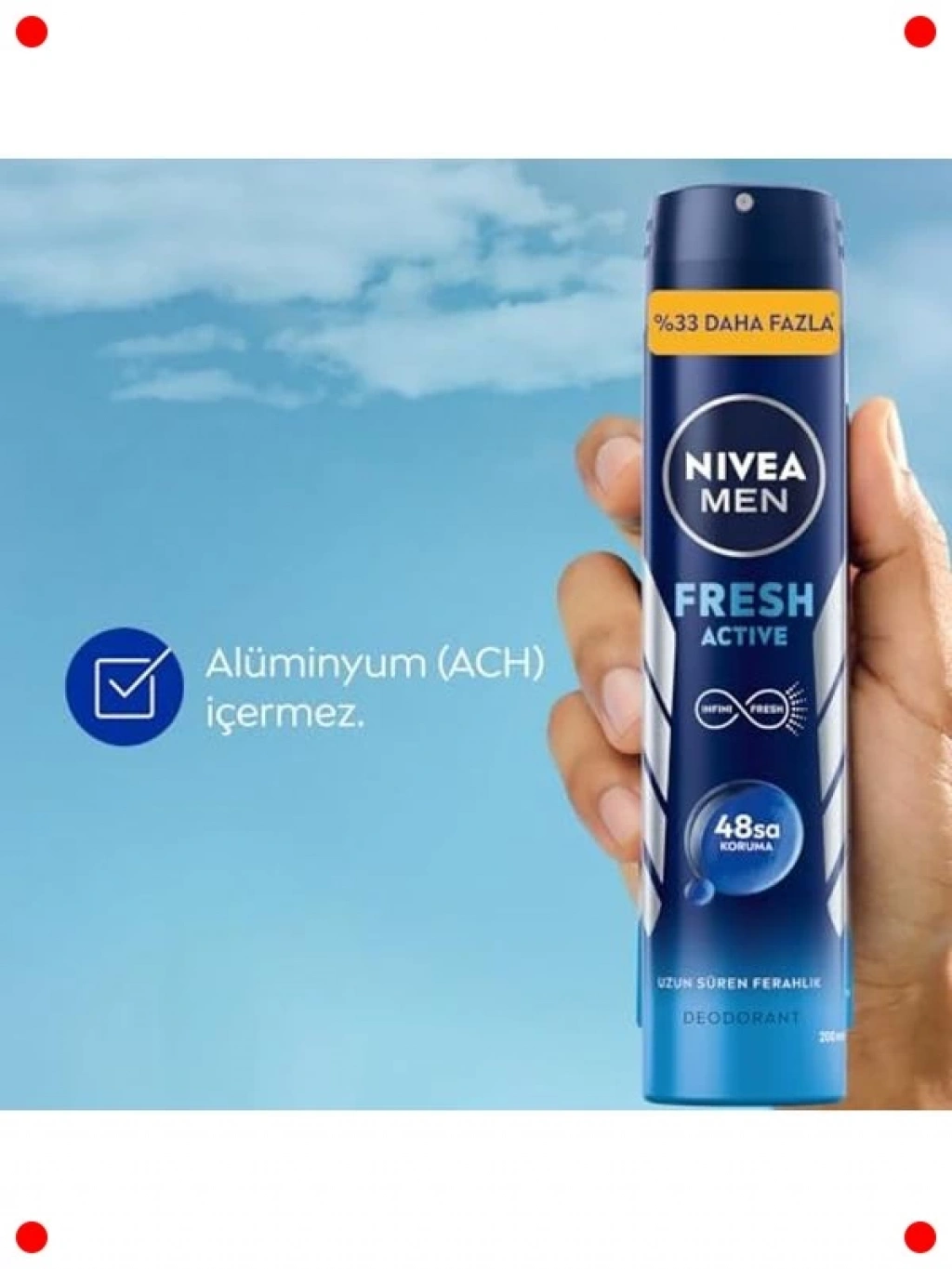 Gün boyu süren ferahlık ve güven için özel olarak tasarlanmış Fresh Active erkek sprey deodorant seti, avantajlı üçlü paketiyle sunulur. Ter kokusuna karşı 48 saate kadar etkili koruma sağlayarak, en yoğun anlarınızda bile kendinizi taze ve güvende hissetmenizi garantiler. Ciltle uyumu dermatolojik olarak kanıtlanmış olan bu formül, cildinizi tahriş etmeden etkili bir koruma sunar. Ferahlatıcı kokusuyla güne zinde başlamanıza yardımcı olurken, uzun süreli etkisiyle her anınızda yanınızda. Aktif yaşam tarzına sahip erkekler için ideal bir seçimdir.