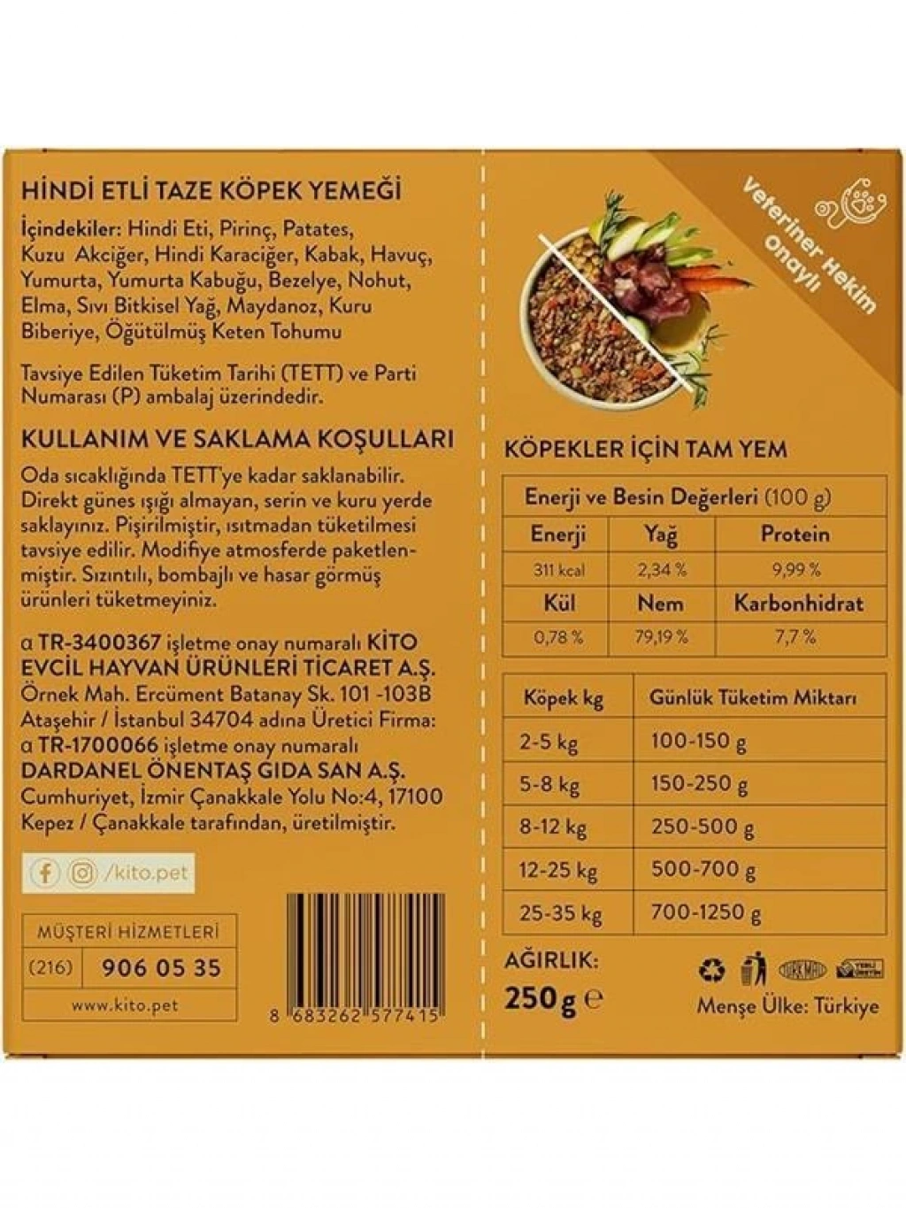 Fresh Hindi Etli Taze Köpek Yemeği, 250gr