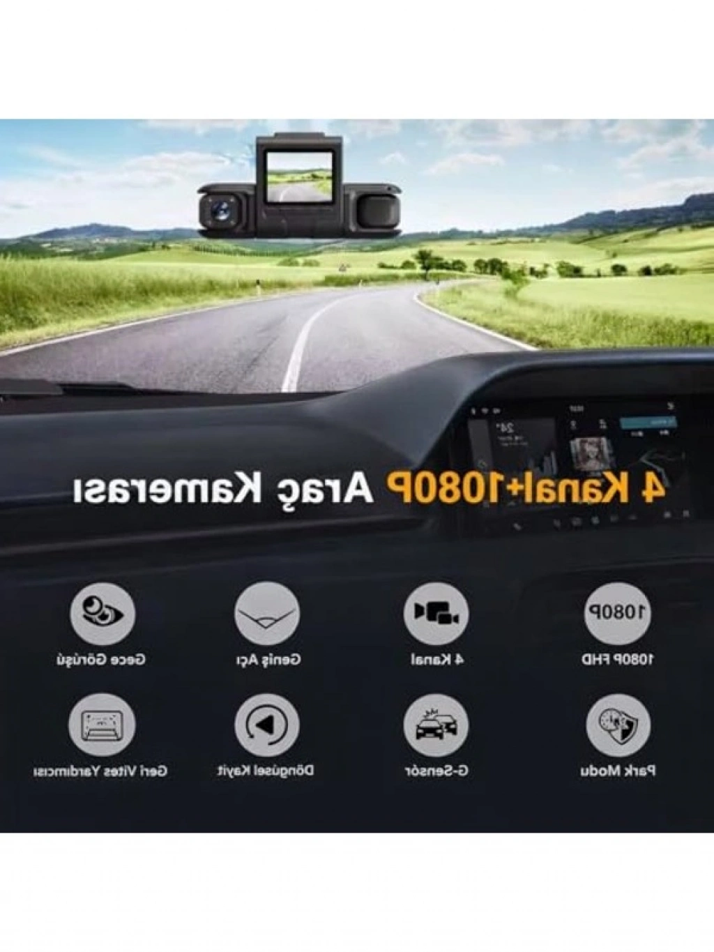 Full HD araç içi kamera, 4 kanal eş zamanlı kayıt özelliği ile ön, arka ve yan kameralarla geniş bir güvenlik alanı sunar. Wi-Fi ve mobil uygulama kontrolü sayesinde canlı izleme, video indirme ve ayar yönetimi mümkündür. G-sensörlü akıllı koruma sistemi ile kazalara karşı kayıtları güvence altına alır.