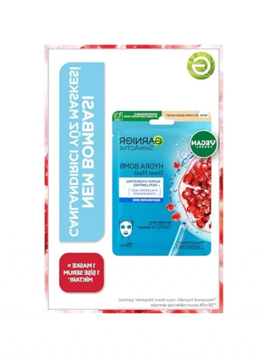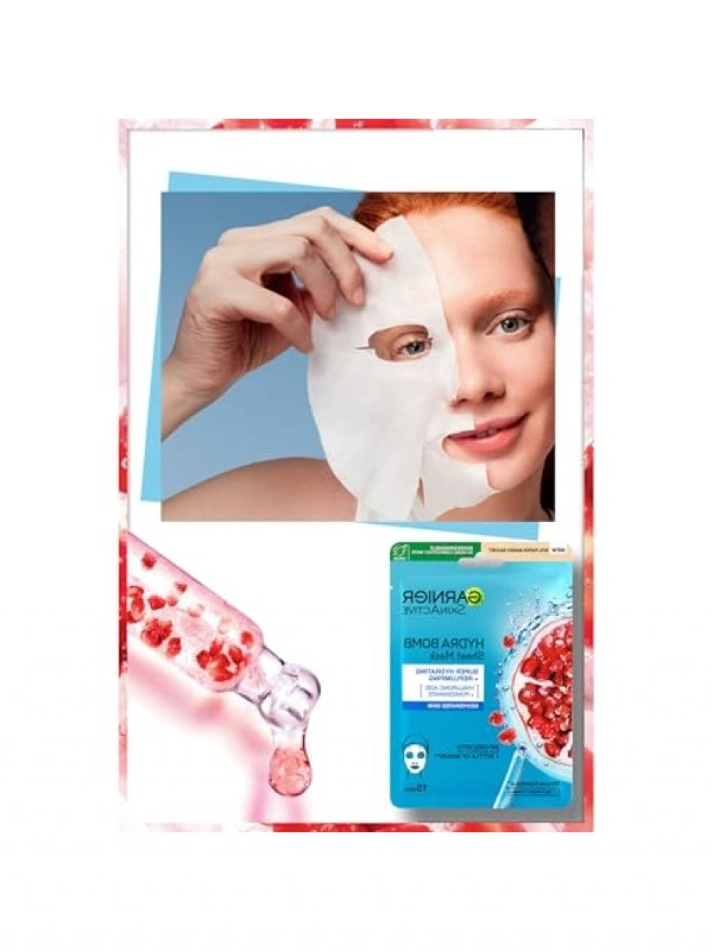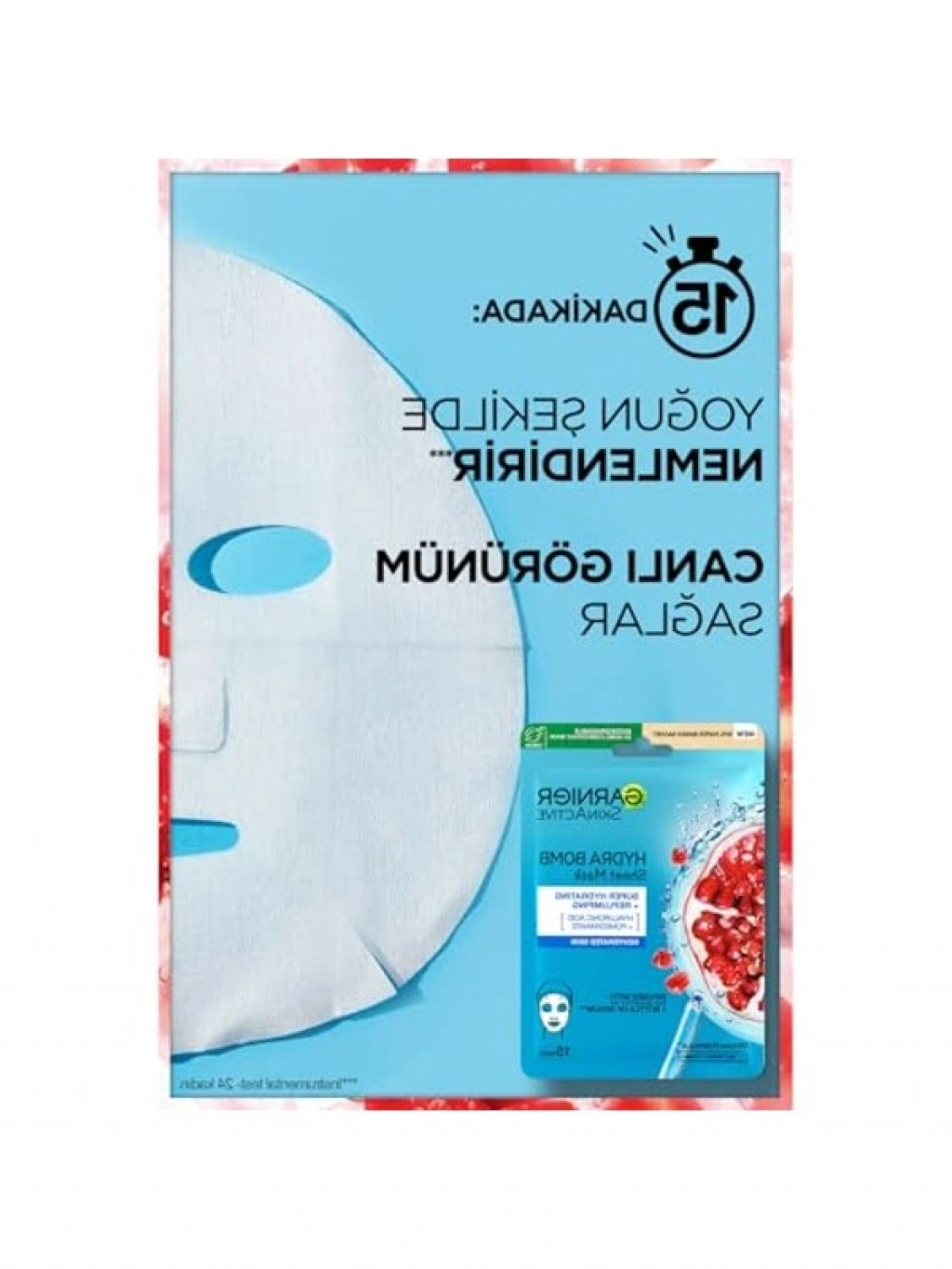 Garnier Hydra Bomb kağıt maske, 15 dakika içerisinde cildinize yoğun bir nem kazandırırken pürüzsüzleşmesini sağlar. Haftada bir kullanımda cildinizin dolgun ve canlı bir görünüm kazanmasına yardımcı olur. Kolay ve kısa sürede uygulanabilen bu maske, dermatolojik olarak test edilmiştir.