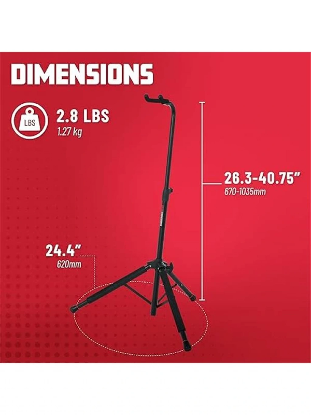 Gator Frameworks Asılı Tekli Gitar Standı; Elektro veya Akustik Gitarları Tutar (GFW-GTR-1200), Siyah