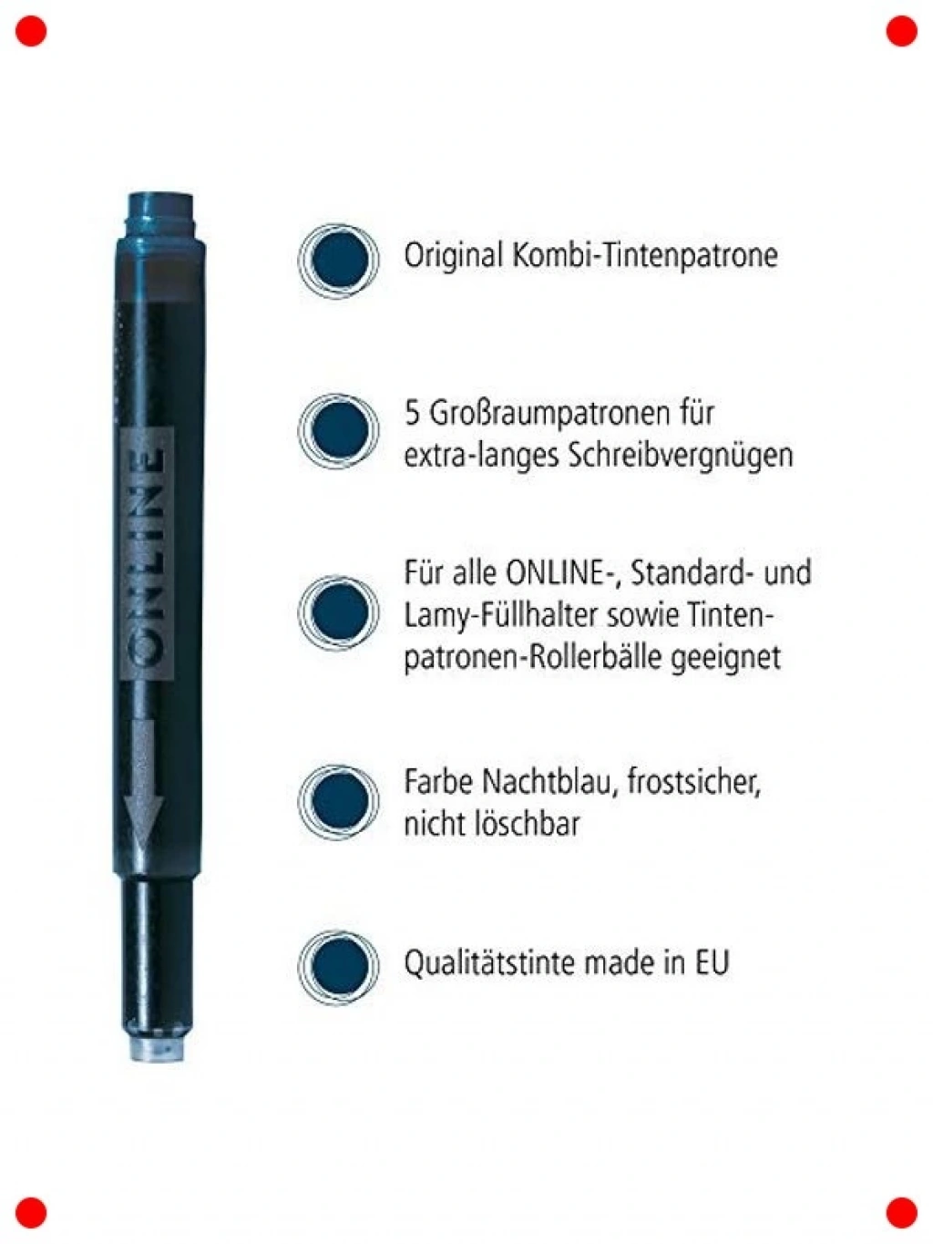 Kalemlerinize derinlik ve zarafet katacak bu gece mavisi mürekkep kartuşu seti, yazım deneyiminizi zenginleştirir. Zengin ve asil gece mavisi tonu, notlarınıza, mektuplarınıza veya imzalarınıza benzersiz bir karakter kazandırır. Standart kartuşlu kalemlerle uyumlu olacak şekilde tasarlanmıştır, böylece favori kaleminizi kolayca doldurabilirsiniz. Akıcı ve kesintisiz mürekkep akışı sayesinde kağıt üzerinde pürüzsüz bir yazım sağlar. Hızlı kuruyan formülü, lekelenmeleri en aza indirir ve temiz bir çalışma yüzeyi sunar. Günlük kullanım, kaligrafi denemeleri veya özel yazışmalar için idealdir. Yazılarınızla fark yaratmak isteyenler için mükemmel bir seçimdir.