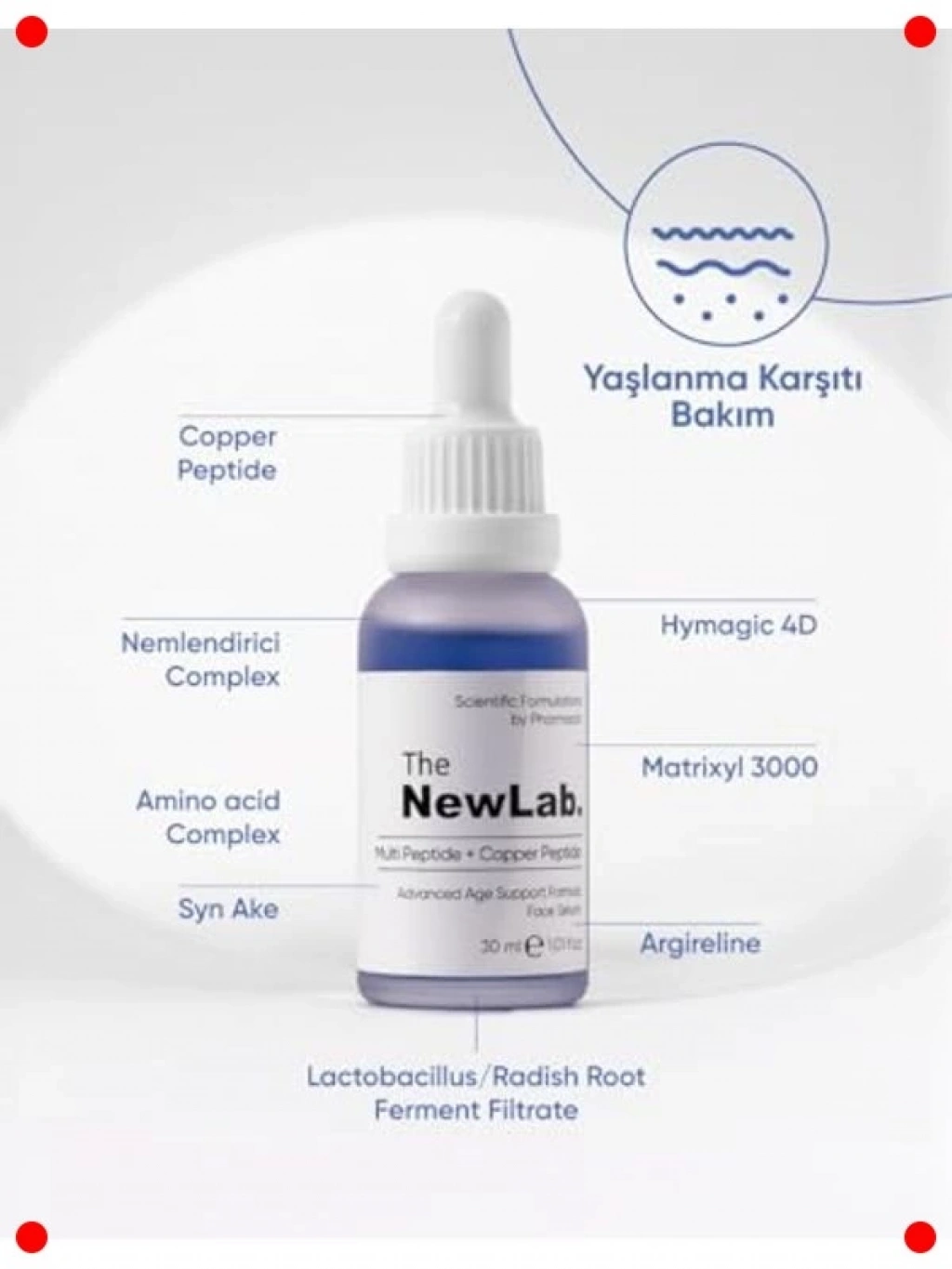 Cildinizin gençlik ışıltısını geri kazandırmak için özel olarak geliştirilmiş bu gelişmiş yaşlanma karşıtı serum, güçlü peptit kompleksleri içerir. Multi Peptide ve %1 Bakır Peptit kombinasyonu, ince çizgi ve kırışıklıkların görünümünü azaltmaya yardımcı olurken, cildin elastikiyetini artırır ve sıkılaşmasına destek olur. Cildin doğal yenilenme sürecini hızlandırarak daha pürüzsüz, dolgun ve canlı bir görünüm sağlar. Düzenli kullanımda cilt tonunu eşitlemeye ve genç bir cilt görünümünü korumaya yardımcı olan bu serum, tüm cilt tipleri için uygundur.