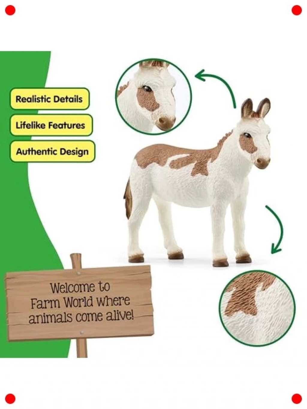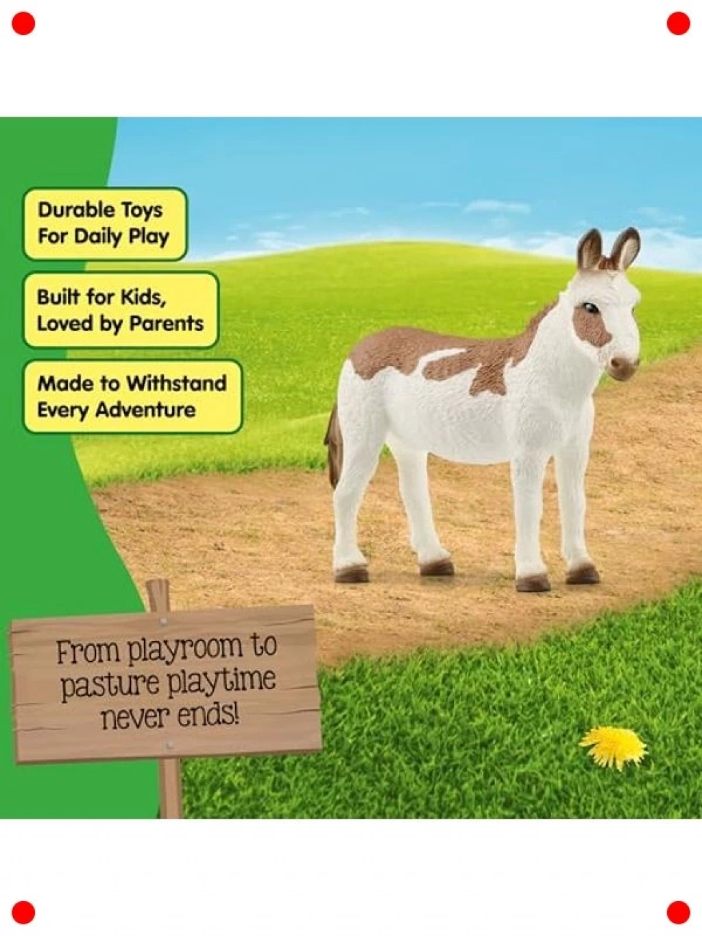 Doğanın güzelliğini ve hayvanların çeşitliliğini evinize taşıyan bu gerçekçi Amerikan Benekli Eşek figürü ile tanışın! Detaylara gösterilen özen ve el boyaması işçiliği sayesinde, eşeğin her bir özelliğini aslına uygun olarak yansıtır. Çocukların hayvanları tanımasına, doğa sevgisini geliştirmesine ve hayal güçleriyle kendi çiftlik maceralarını yaratmasına olanak tanır. Yüksek kaliteli ve dayanıklı malzemelerden üretilmiş olup, uzun süreli oyun keyfi sunar. Koleksiyoncular için eşsiz bir parça olmasının yanı sıra, eğitici ve eğlenceli bir oyuncak olarak da öne çıkar.