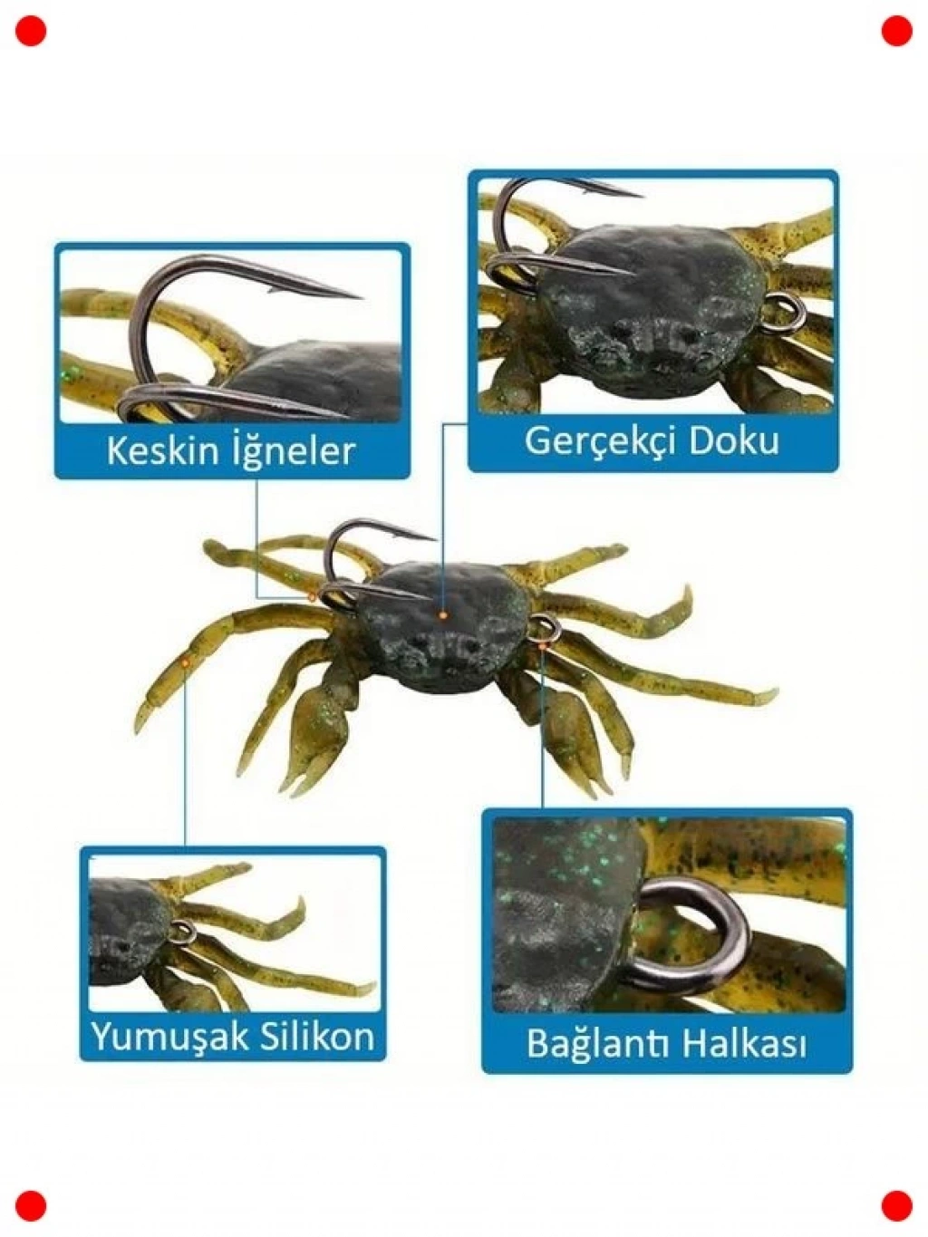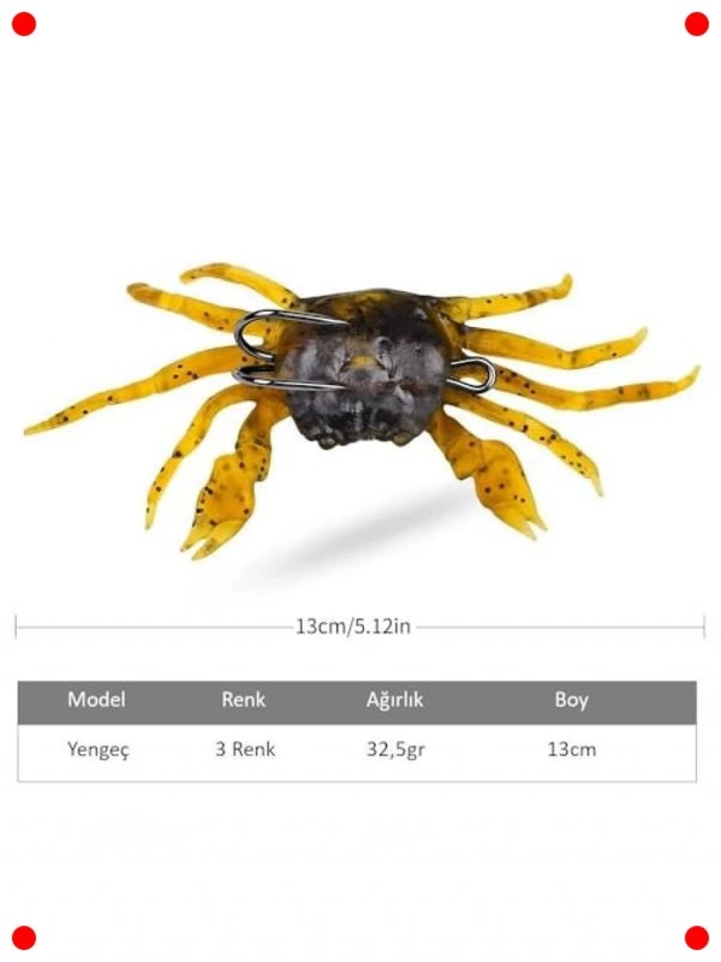 Balıkçılık deneyiminizi zenginleştirecek bu 3 adet gerçekçi silikon yengeç balık yemi seti, çupra ve levrek gibi avcı balıkları cezbetmek için özel olarak tasarlanmıştır. Yumuşak silikon malzemesi, suda doğal bir hareket sergileyerek gerçek yengeç hissi verir. Çift iğneli tasarımı sayesinde yüksek yakalama oranları sunar ve dayanıklılığı ile uzun süreli kullanıma olanak tanır. 13 cm boyutu ve 32.5 gram ağırlığı, atış kolaylığı ve kontrol sağlar. Denizde ve tatlı suda etkili, avınızın bereketini artıracak profesyonel bir seçimdir.