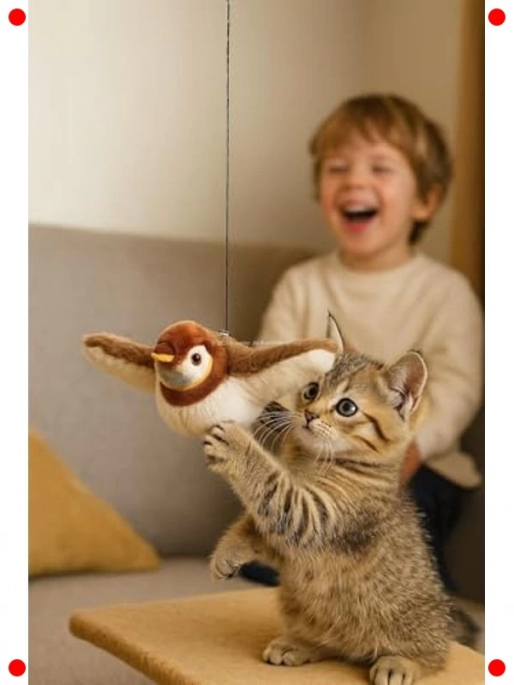 Kedinizin avlanma içgüdülerini harekete geçirecek, gerçekçi tasarıma sahip bu interaktif kuş oyuncağı ile evcil dostunuza sınırsız eğlence sunun. Titreşimli hareketleri, gerçekçi kanat çırpma efekti ve sesli etkileşim özellikleriyle kedinizin dikkatini çeker ve onu saatlerce oyuna teşvik eder. İple asılabilir yapısı sayesinde farklı yüksekliklerde kullanılabilir, kedinizin zıplama ve yakalama becerilerini geliştirmesine yardımcı olur. Dokunmatik sensörleri sayesinde harekete duyarlı olup, kediniz her yaklaştığında aktifleşerek oyun keyfini artırır. Bu oyuncak, kedinizin fiziksel ve zihinsel sağlığı için mükemmel bir aktivite aracıdır, aynı zamanda sıkılmasını engeller.