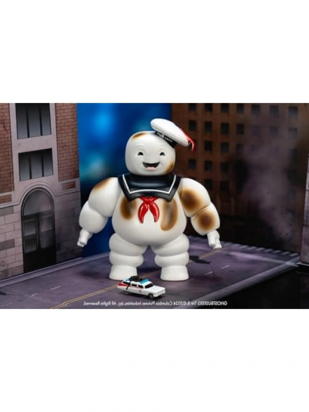 Ghostbusters serisinin ikonik karakteri Stay Puft Marshmallow Man figürü, 15 cm yüksekliğiyle detaylı bir tasarıma sahiptir. Paket içeriğinde Stay Puft figürü ve minyatür Ecto-1 araç modeli bulunmaktadır. Figür, klasik denizci yaka, kırmızı papyon ve beyaz şapkasıyla, nostaljik görünümünü korumaktadır. Özel tasarım kutusuyla birlikte gelir, koleksiyoncular için mükemmel bir seçenek sunar.