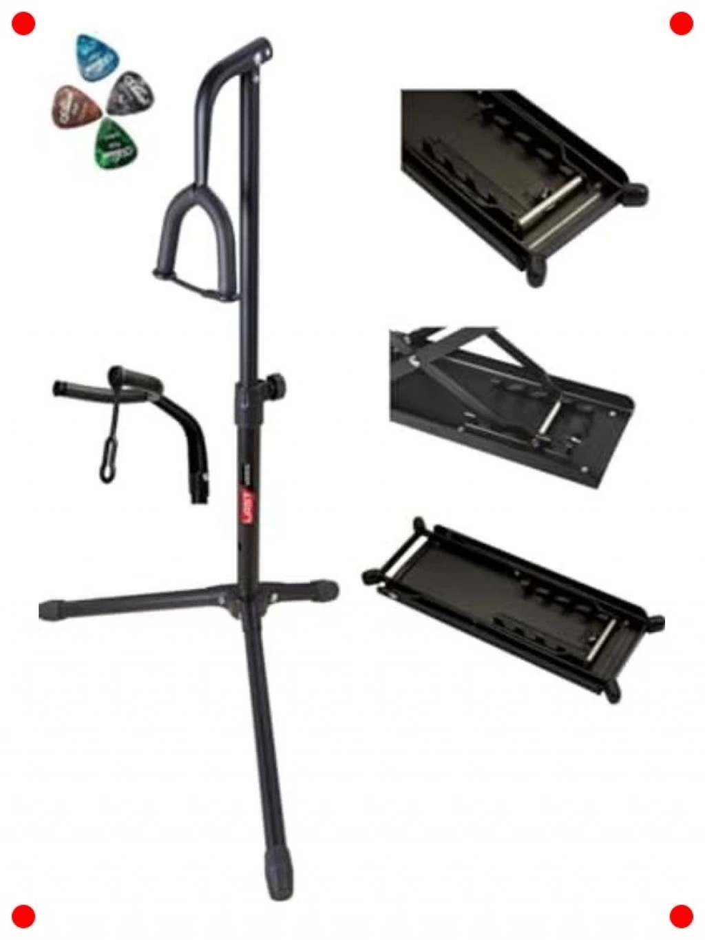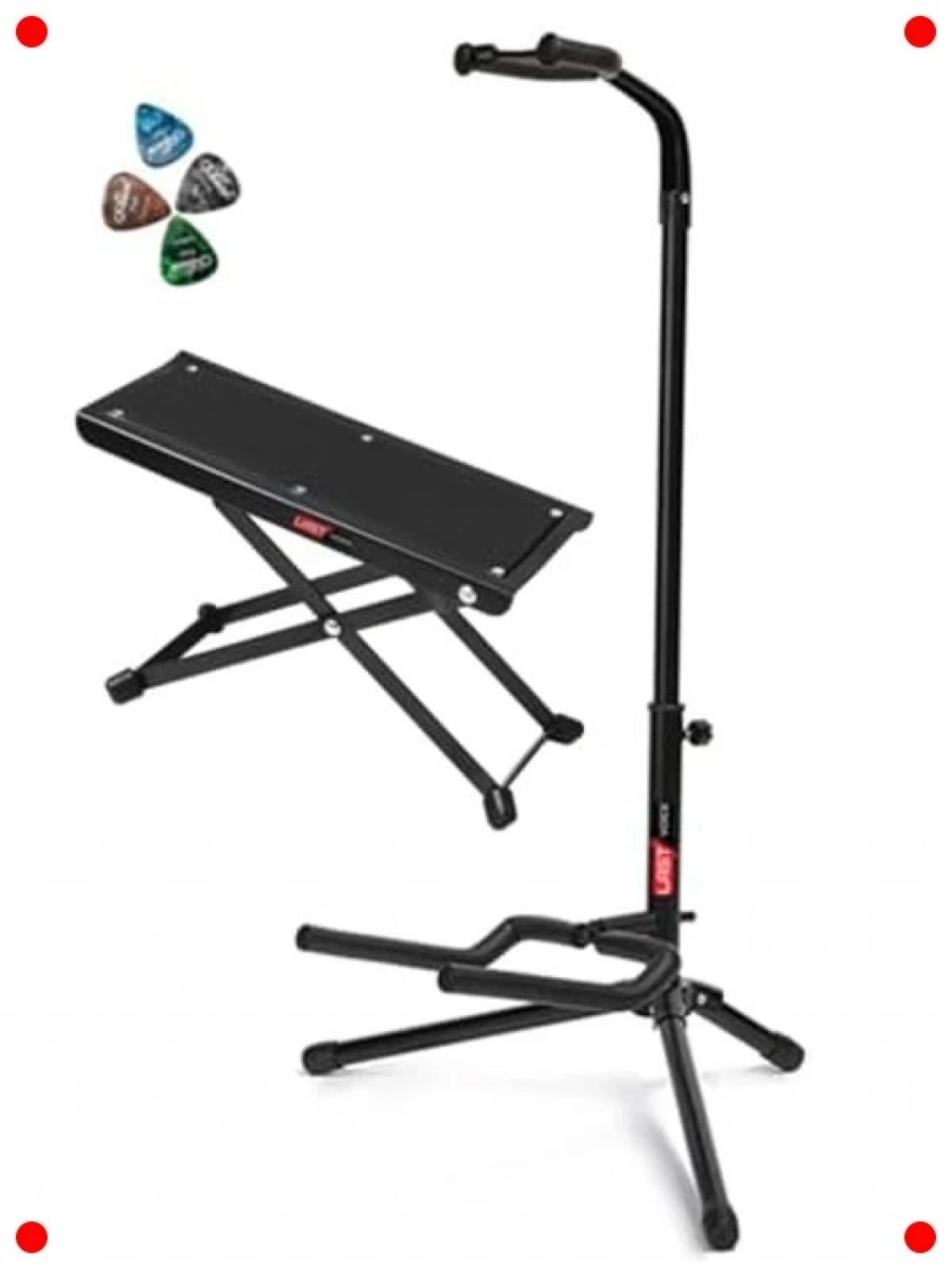 Bu kapsamlı set ile gitarınızı düzenli ve güvenli bir şekilde saklayabilir, çalarken konforunuzu artırabilirsiniz. Sağlam ve katlanabilir gitar standı, enstrümanınızı düşme veya çizilmelere karşı korur, aynı zamanda kolay taşınabilirlik sunar. Pratik gitar ayaklığı, uzun çalma seanslarında doğru duruş pozisyonunu korumanıza yardımcı olarak sırt ve omuz ağrılarını azaltır. Ayrıca set içerisinde bulunan pena hediyesiyle anında çalmaya başlayabilirsiniz. Elektro, akustik veya klasik gitar fark etmeksizin tüm gitarlar için uygundur. Hem evde hem de sahnede kullanım için ideal, şık ve fonksiyonel bir çözümdür.