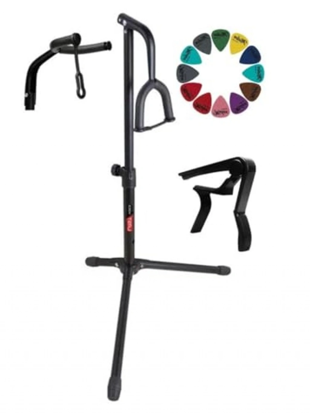 Gitar standı ve aksesuar paketi, pratik kullanım özellikleriyle dikkat çeker. Gitarınızı güvenli bir şekilde sergilerken, yanındaki aksesuarlarla müzik keyfinizi artırır. Bu set, hem amatör hem de profesyonel gitaristlerin ihtiyaçlarını karşılayacak şekilde tasarlanmıştır.
