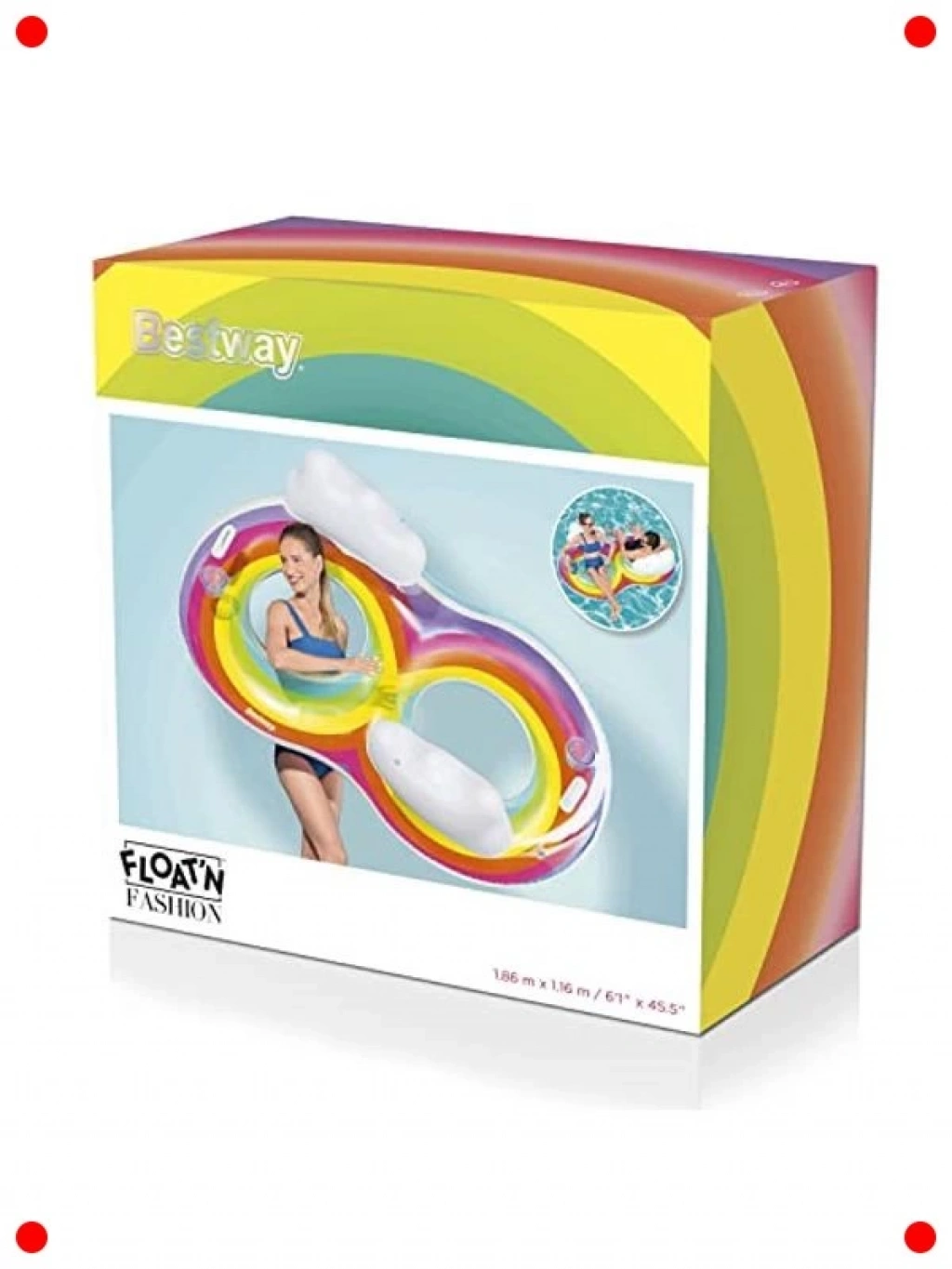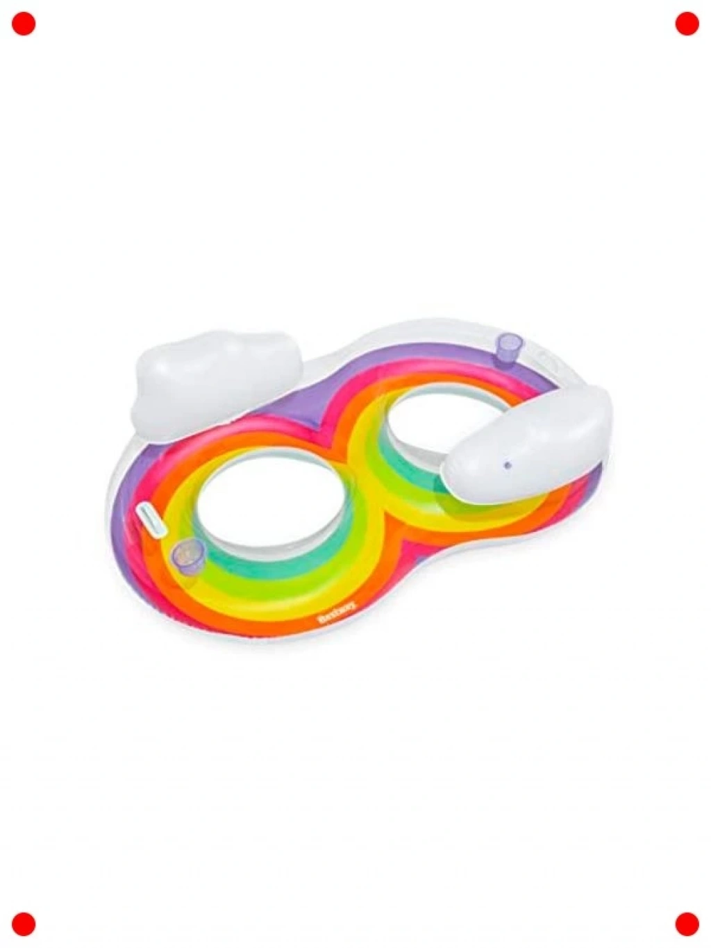 Bu canlı 'Gökkuşağı Rüyaları' iki kişilik yüzme simidi ile nihai konfor ve stil içinde süzülün. 1.86 m x 1.16 m ölçülerindeki bu geniş şişme, bir arkadaş veya sevdiğinizle güneşin tadını çıkarmak için mükemmeldir. Göz alıcı gökkuşağı tasarımı, herhangi bir havuz partisine veya plaj gününe bir renk patlaması getirir. Dayanıklı, yüksek kaliteli malzemeden yapılmış olup, güvenli ve rahat bir yüzme deneyimi sağlar. Cömert boyutu, uzanmak ve suyun keyfini çıkarmak için geniş alan tanır. Tatiller, tembel nehir gezileri veya sadece havuz başında dinlenmek için ideal olan bu çift kişilik şamandıra, unutulmaz su maceralarını garanti eder.