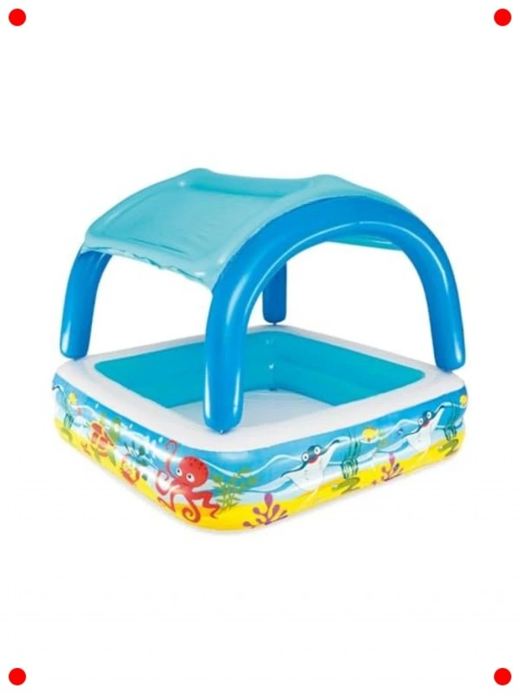 Yaz sıcağında miniklerin serinlemesi ve eğlenmesi için ideal bu gölgelikli oyun havuzu, 1.40m x 1.40m boyutlarıyla geniş bir oyun alanı sunar. Entegre gölgelik sayesinde çocukları zararlı güneş ışınlarından korur, güvenli bir oyun ortamı sağlar. Dayanıklı ve çocuk dostu malzemelerden üretilmiştir, kolayca şişirilip kurulabilir. Havuzun dibi yumuşak olduğundan rahat bir oturuş ve oyun deneyimi sunar. Bahçenizde, terasınızda veya balkonunuzda çocuklarınızın keyifli anlar geçirmesi için mükemmeldir. Kolay boşaltma vanası sayesinde pratik bir kullanım sunar.