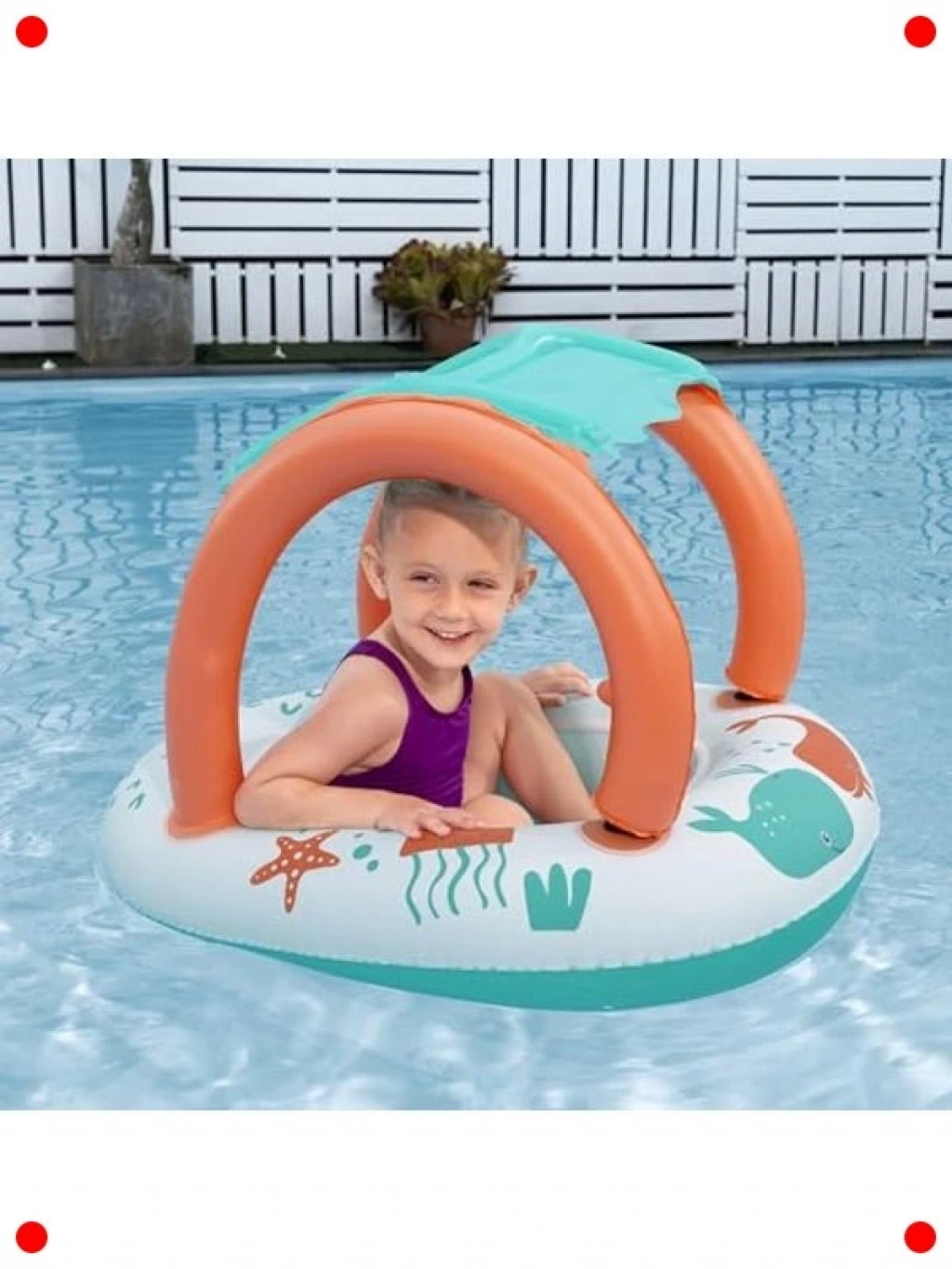 Minik bebeğinizin yaz sıcaklarında serinlemesi ve suyun tadını güvenle çıkarması için tasarlanmış bu gölgelikli yüzme teknesi, konfor ve korumayı bir araya getiriyor. Yumuşak peluş iç yüzeyi sayesinde bebeğiniz rahat ederken, entegre gölgelik güneşin zararlı ışınlarından korunmasına yardımcı olur. 84 x 67 cm boyutlarıyla geniş bir yüzme alanı sunar. Dayanıklı ve bebek dostu malzemelerden üretilmiştir. Hem havuzda hem de plajda keyifli anlar yaşatırken, ebeveynlere de iç rahatlığı sağlar. Bebeğinizin ilk su deneyimleri için mükemmel bir seçimdir, güvenli ve eğlenceli saatler garanti eder.