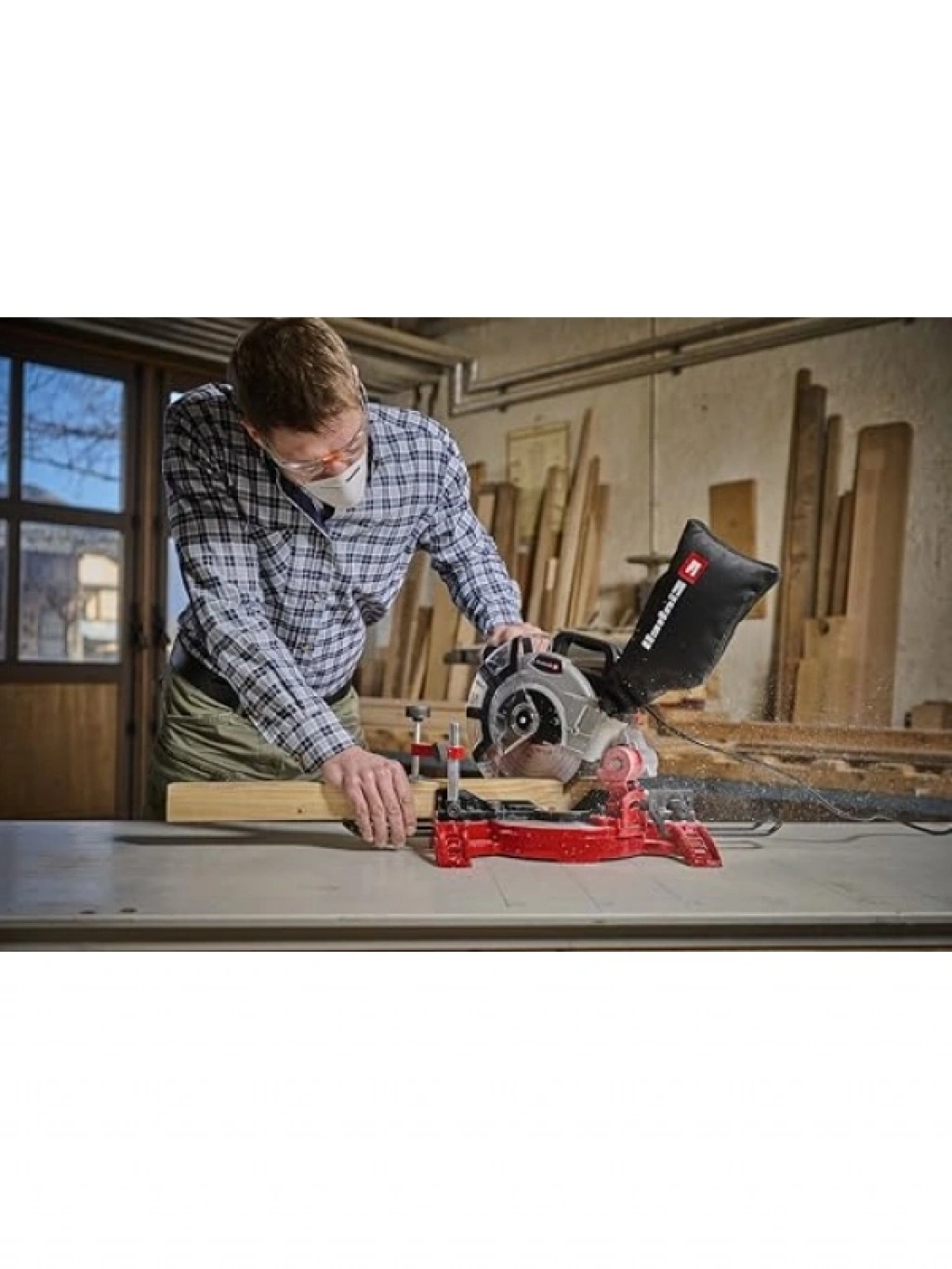 1.600 W gücündeki gönye testere, yüksek kaliteli karbür uçlu testere bıçağı ile donatılmıştır. 5.000 devir/dakika hızıyla kesim işlemlerinizi hızlı ve kolay bir şekilde yapmanızı sağlar. 45° sola ve sağa ayarlanabilir döner masa, hassas açı ayarı ile işlerinizi kolaylaştırır. İki tarafındaki destekler ile güvenli ve dengeli bir kesim sunar. Talaş torbası ile çalışma alanınızı temiz tutarken, taşıma kilidi ile güvenli bir şekilde taşınabilir.