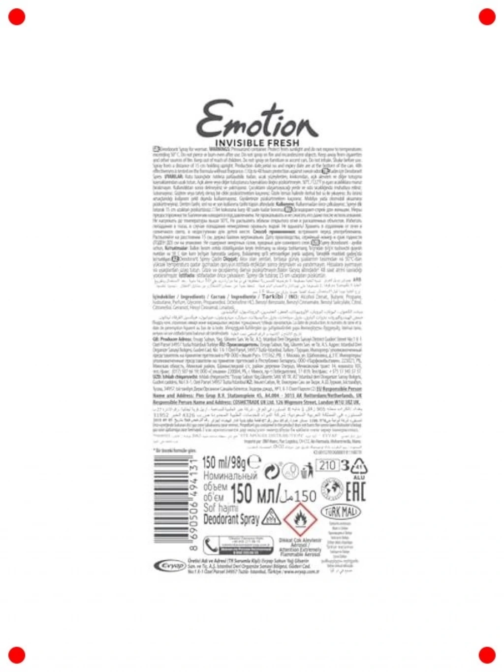 Gün boyu süren ferahlık ve güven için özel olarak geliştirilmiş bu 150 ml kadın deodorantı, görünmez formülü sayesinde kıyafetlerinizde leke bırakmaz. Terlemeye bağlı kötü kokuları etkili bir şekilde önlerken, cildinizde taze ve hafif bir his bırakır. Hassas ciltler için uygun olan bu ürün, cildin doğal dengesini koruyarak tahrişi en aza indirir. Hızlı kuruyan yapısı sayesinde günlük kullanımda pratiklik sağlar ve yoğun tempolu günlerinizde bile kendinizi güvende hissetmenize yardımcı olur. Çantada taşımaya uygun boyutuyla, günün her anında tazelenme imkanı sunar. Uzun süreli koruma ve ferah bir deneyim için idealdir.