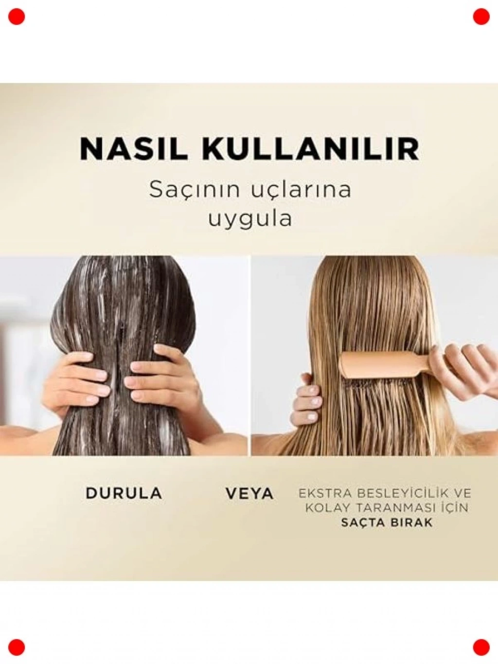 Saçlarınıza ihtiyaç duyduğu gücü ve göz kamaştırıcı parlaklığı sunan bu saç kremi, günlük saç bakım rutininizin olmazsa olmazıdır. Özel formülü sayesinde saç tellerini kökten uca besler, yıpranmalara karşı koruma kalkanı oluşturur. Saçların kolay taranmasını sağlayarak kırılmaları ve kopmaları minimize eder. Saçlara yoğun nem vererek ipeksi bir yumuşaklık ve pürüzsüzlük kazandırır. Düzenli kullanımda saçlarınızın daha sağlıklı, canlı ve ışıl ışıl görünmesine katkıda bulunur. Her uygulamada saçlarınızın dönüşümünü fark edin ve kendinizi iyi hissedin.