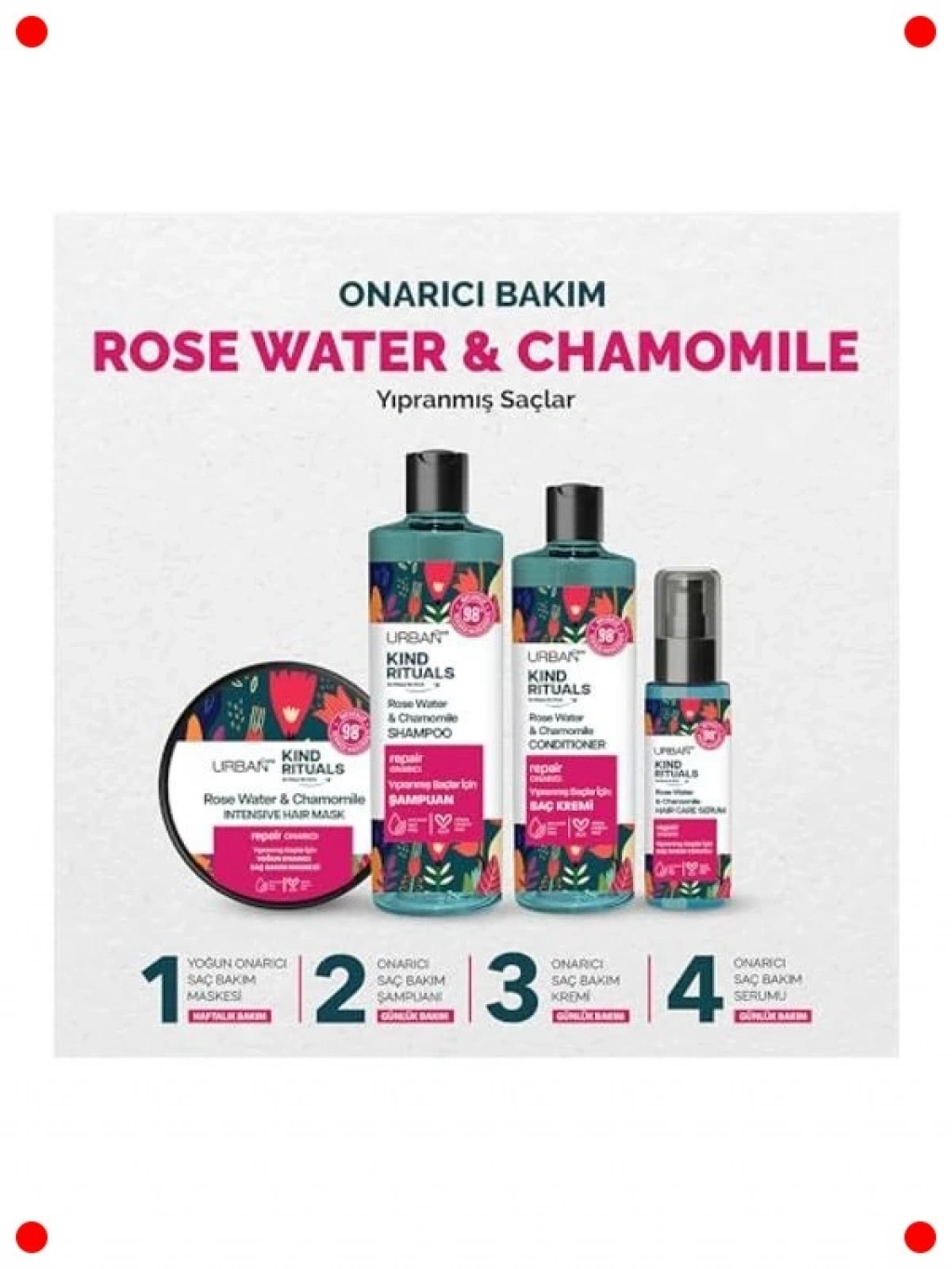 Saçlarınızı nazikçe temizlerken aynı zamanda besleyen gül suyu ve papatya özlü bu şampuan, saç derinize rahatlatıcı bir etki sunar. Doğal içeriklerle zenginleştirilmiş formülü sayesinde saçlarınızı kökten uca arındırır ve onarır. Papatya özünün sakinleştirici etkisiyle saç derisi tahrişini azaltmaya yardımcı olurken, gül suyu saçlara doğal bir parlaklık ve yumuşaklık kazandırır. 400 ml'lik büyük boyutuyla uzun süreli kullanım imkanı sunar. Günlük kullanım için uygun olan bu şampuan, saçlarınızın daha sağlıklı ve canlı görünmesini sağlar. Her yıkamada hoş bir koku bırakır.