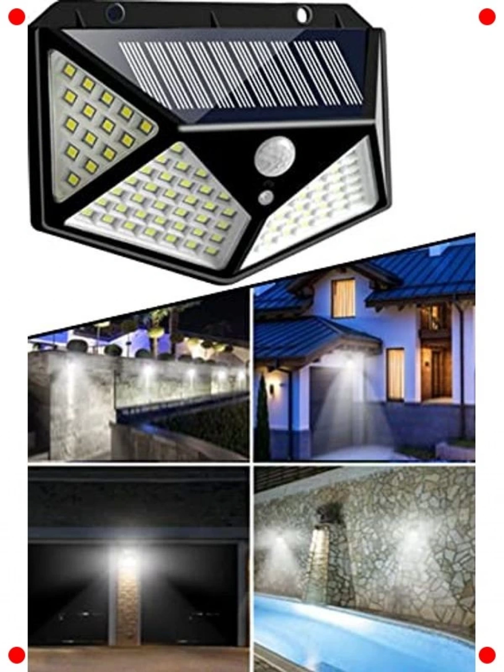 Bahçenizi, garajınızı, avlunuzu veya yürüme yollarınızı pratik ve güvenli bir şekilde aydınlatmak için tasarlanmış bu güneş enerjili 100 LED lambayı deneyimleyin. Entegre güneş paneli sayesinde gün içinde güneş enerjisini depolar ve kablolama gerektirmeden çalışır. Gelişmiş hareket sensörü, yaklaştığınızda otomatik olarak güçlü bir ışık sağlayarak hem güvenlik hem de kolaylık sunar. IP65 su geçirmezlik derecesi, zorlu dış mekan koşullarına karşı dayanıklılık sağlar. Kurulumu kolaydır, enerji tüketimi sıfırdır ve çevre dostu bir aydınlatma çözümüdür. Gece karanlığında anında aydınlatma ihtiyacınız için idealdir.