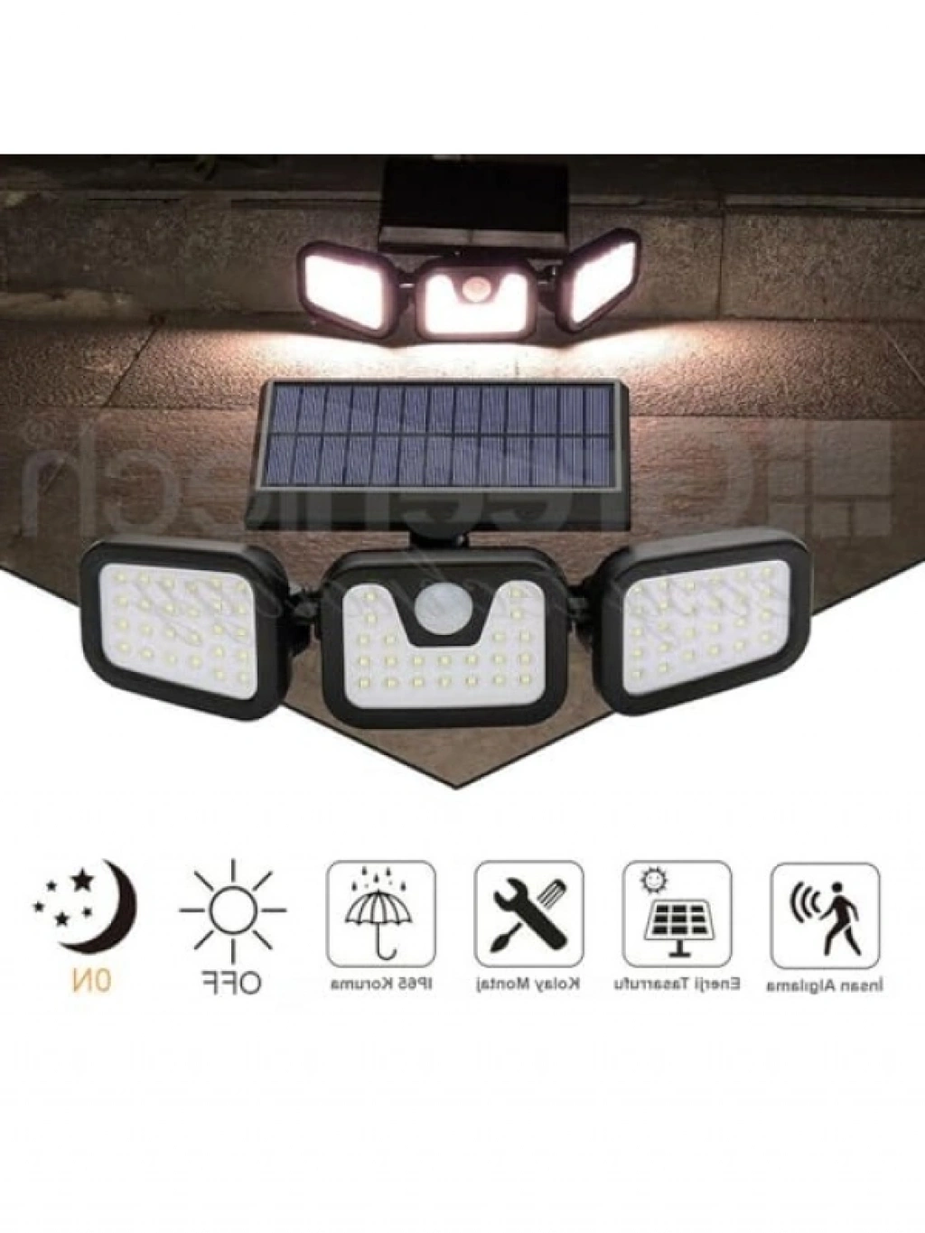 Bu güneş enerjili LED aydınlatma, 74 adet SMD2835 LED ile donatılmıştır ve 6000-6500K renk sıcaklığına sahiptir. IP65 su geçirmezlik derecesi ile dış mekan kullanımı için idealdir. 450 lumen ışık akışı sunarak alanınızı aydınlatır. 6-8 metre algılama mesafesi ve 120° açısıyla hareket algılama yeteneği sağlar. Güneş paneli, 2WP monokristal silikon ile üretilmiştir ve 18650 lityum iyon pili 2200mAh kapasiteye sahiptir. 6-8 saatlik şarj süresi ile enerji verimliliği sunar.
