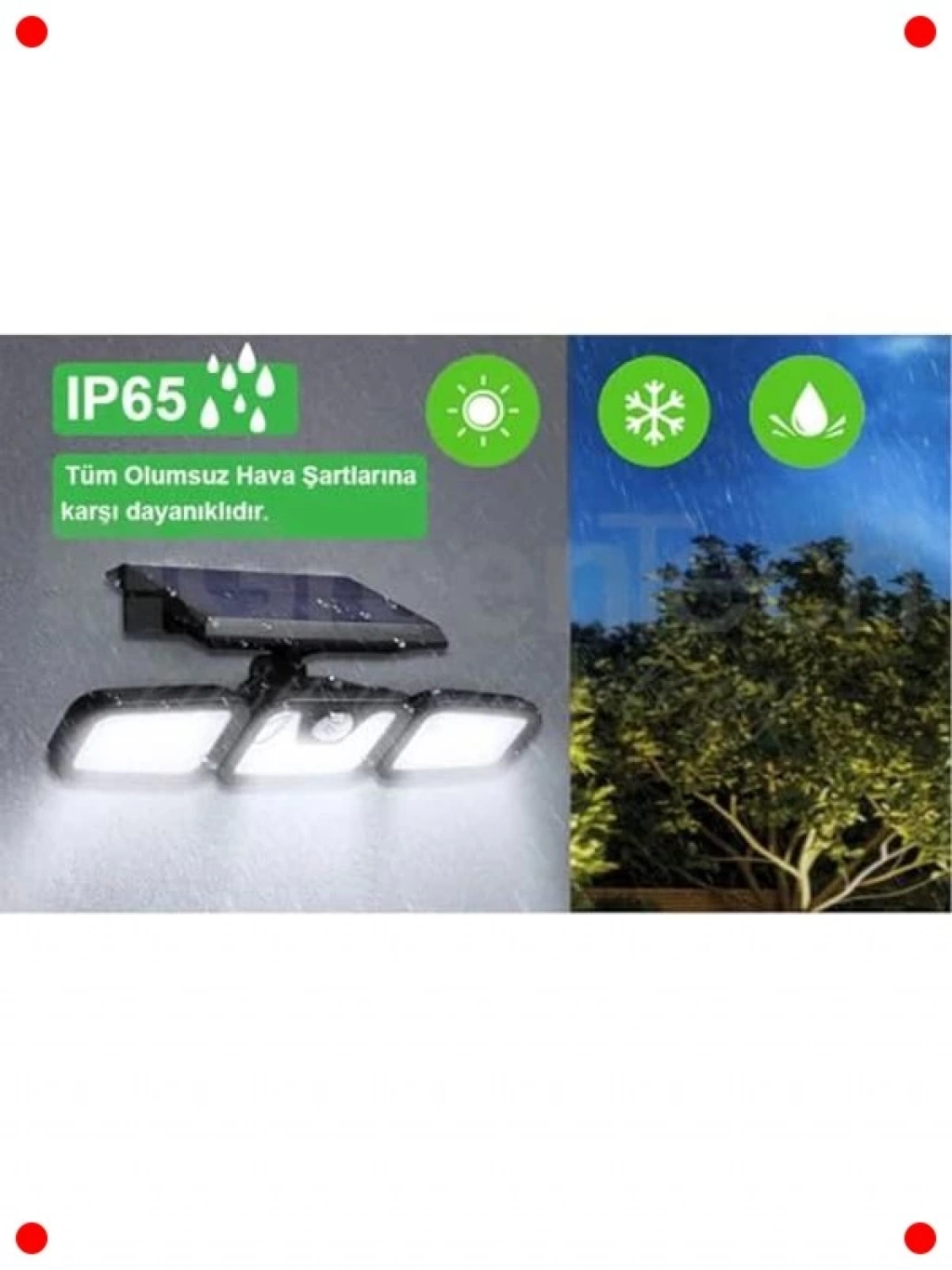 Bahçenizi, garajınızı veya giriş kapınızı güçlü ve çevre dostu bir şekilde aydınlatın. Bu güneş enerjili LED ışık, üç taraflı geniş aydınlatma açısı ve dahili hareket sensörü sayesinde mükemmel bir güvenlik ve konfor sunar. Gündüzleri güneş enerjisiyle şarj olur, hava karardığında veya hareket algıladığında otomatik olarak yanar. Kablosuz kurulumu sayesinde herhangi bir elektrik bağlantısına ihtiyaç duymaz, istediğiniz yere kolayca monte edilebilir. Suya dayanıklı tasarımıyla her türlü hava koşulunda güvenle çalışır. Hem enerji tasarrufu sağlar hem de dış mekanlarınızı daha güvenli ve aydınlık hale getirir.