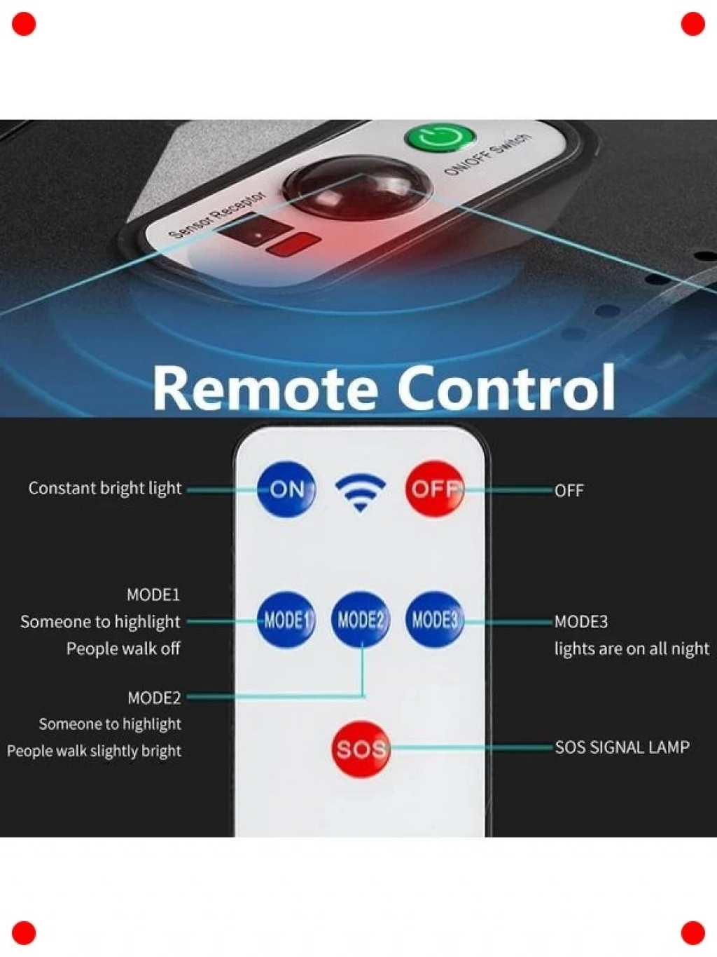 Çevre dostu ve enerji verimli bu güneş enerjili dış mekan LED aydınlatma armatürü ile bahçenizi, balkonunuzu veya garajınızı kolayca aydınlatın. 60W beyaz LED ışığı (3200-6500K), geniş bir alanı güçlü ve net bir şekilde aydınlatır. Güneş paneli sayesinde gün içinde enerjiyi depolar ve geceleri otomatik olarak devreye girer, böylece elektrik maliyetlerinden tasarruf etmenizi sağlar. Hareket sensörü, gereksiz enerji tüketimini önlerken, uzaktan kumandasıyla ışık modlarını kolayca ayarlayabilirsiniz. IP65 su geçirmezlik derecesiyle her türlü hava koşuluna dayanıklıdır. Çit, veranda, teras, patika gibi birçok dış alanda kullanıma uygundur.