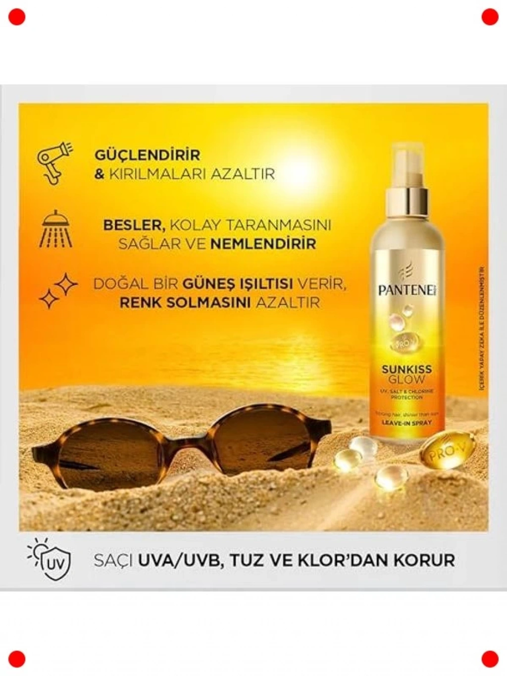 Saçlarınızı güneşin zararlı UV ışınlarına karşı korumak ve canlılığını muhafaza etmek için özel olarak geliştirilmiş bu saç spreyi, yaz aylarının kurtarıcısıdır. Saç tellerini güneşin kurutucu etkilerinden, rengini soldurmaktan ve yıpranmaktan korur. Hafif formülü sayesinde saçları ağırlaştırmaz veya yağlı bir his bırakmaz. Saçlarınıza doğal bir parlaklık kazandırırken, nem dengesini korumasına yardımcı olur. Tüm saç tipleri için uygun olan bu sprey, özellikle boyalı ve işlem görmüş saçların rengini ve sağlığını korumak için idealdir. Plajda veya havuz kenarında yanınızdan ayırmayın.