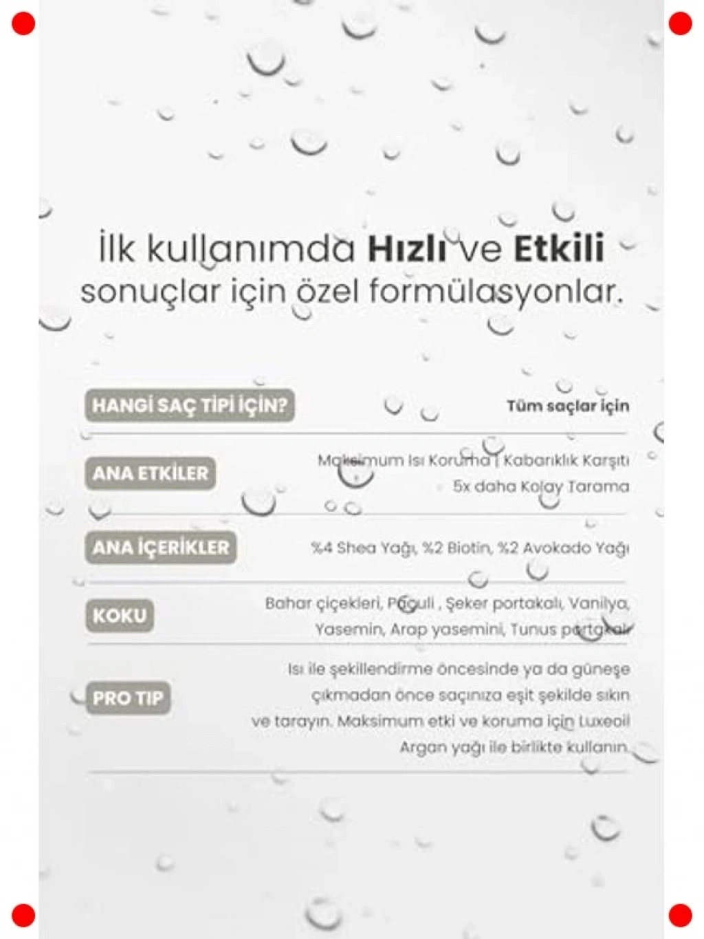 Güneşin, denizin ve havuzun yıpratıcı etkilerine maruz kalan saçlar için özel olarak geliştirilmiş bu onarıcı sprey, saçlarınıza anında bakım ve nem sağlar. Saç tellerini güçlendirerek kırılma ve yıpranmayı azaltmaya yardımcı olur. İçeriğindeki besleyici bileşenler sayesinde saçlarınıza parlaklık ve yumuşaklık kazandırır. Saçın kolay taranmasına yardımcı olurken, güneşin neden olduğu kuruluğu giderir. Her kullanımdan sonra saçlarınızın daha canlı, sağlıklı ve ipeksi bir hisse kavuşmasını destekler. Yaz aylarında saç bakım rutininizin vazgeçilmezidir.