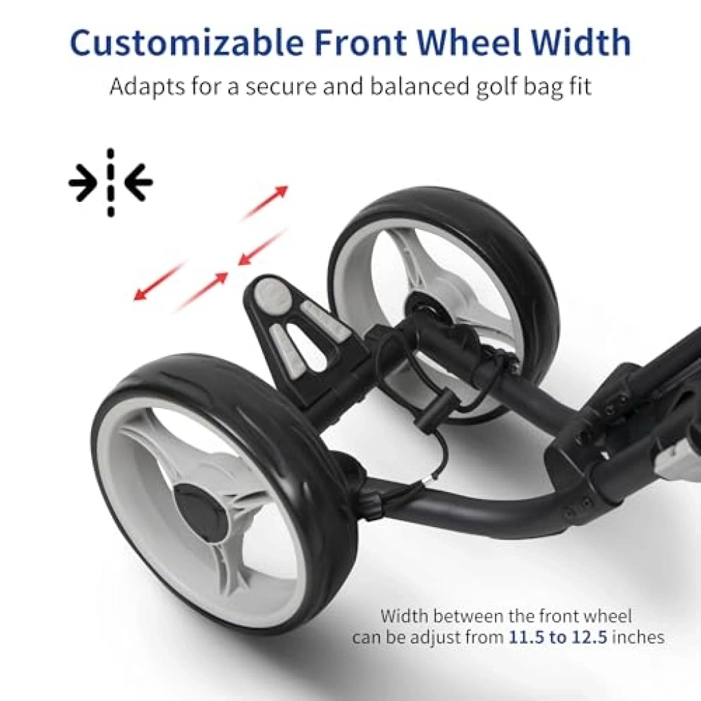 Hafif ve pratik 4 tekerlekli golf arabası, patentli basit 2 mandallı mekanizması ile kolayca katlanabilir. Farklı itme pozisyonları ve ayarlanabilir sap yüksekliği ile her boyuttaki golf çantasına uygundur. Zahmetsiz bir itme deneyimi sunarak golf keyfinizi artırır.