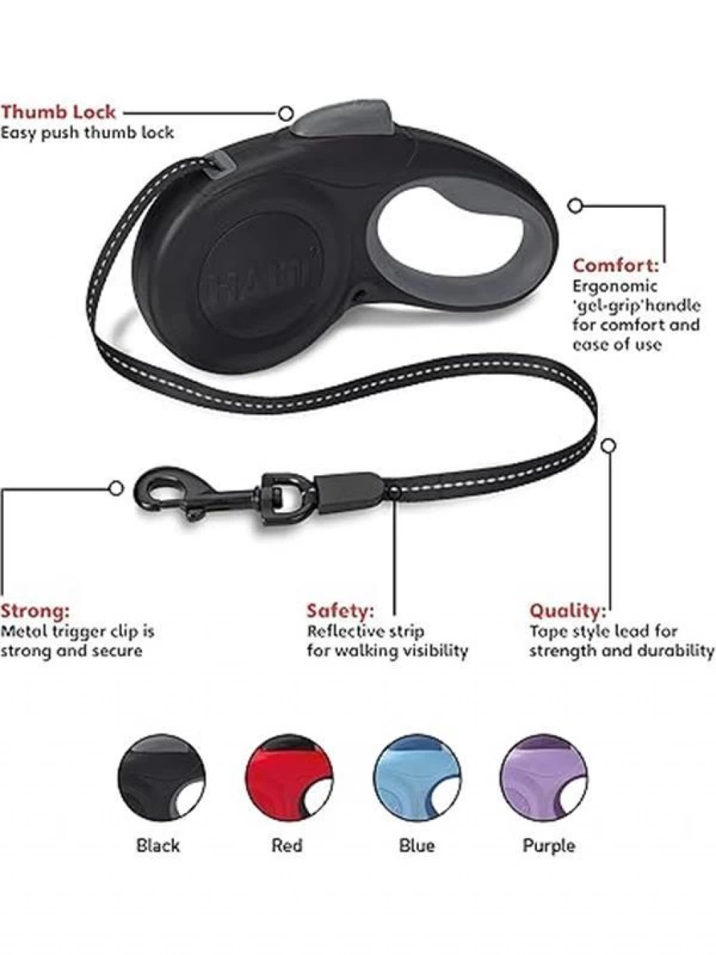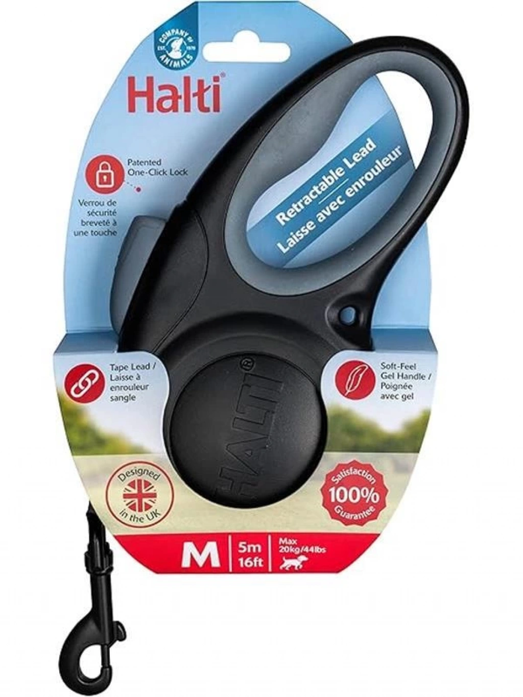 Bu ürün hakkında Halti geri çekilebilir yönlendirici ergonomik olarak tasarlanmış bir tutamağa ve yönlendirici uzunluğunu ayarlamak için basit bir tek tıklamalı kilide sahiptir bu da köpeğinizin her ortamda yürümesini kolaylaştırır Her koşulda yürüme görünürlüğü için yansıtıcı şerit Güç ve güvenlik için şerit yönlendirici 5 m uzunluğundadır ve 20 kga kadar köpekler için uygundur Günlük konfor için ergonomik jel hisli sapla hızlı yönlendirici ayarı için kolay baş parmak kilidi Bu siyah geri çekilebilir yönlendiriciyi Haltinin birlikte kullanılan tasma veya Göğüs Tasması ile birlikte kullanabilirsiniz ikisi de ayrı ayrı satın alınabilir