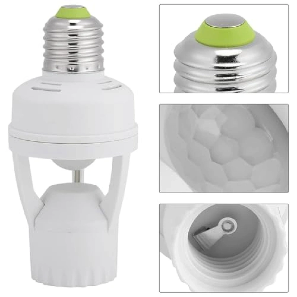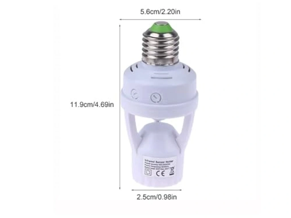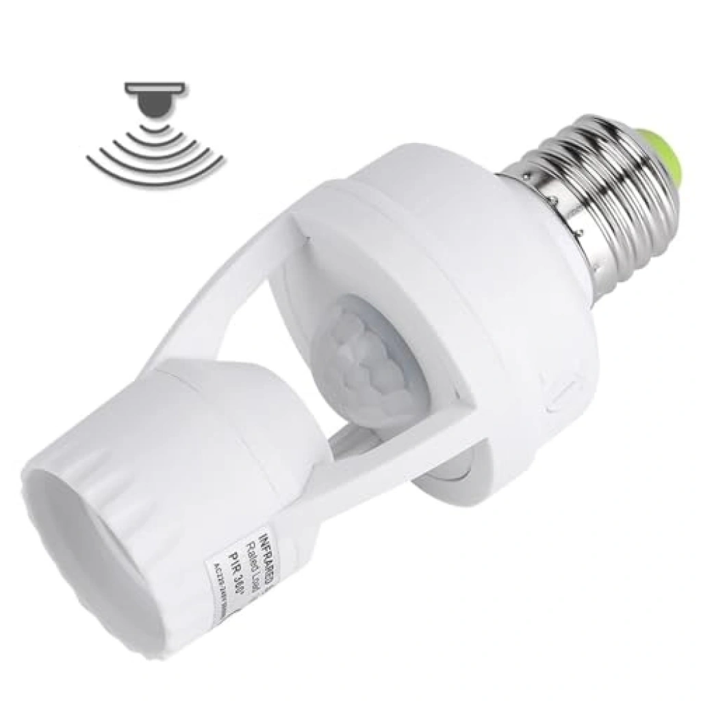 Hareket sensörlü lamba tutucu, 110-240 Volt aralığında çalışabilir ve 60 Watt ampul soketi ile uyumludur. PIR teknolojisi sayesinde enerji tasarrufu sağlar ve pratik bir kullanım sunar.